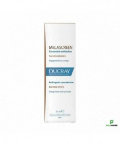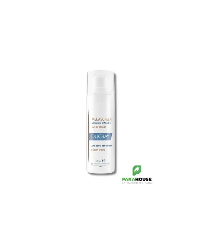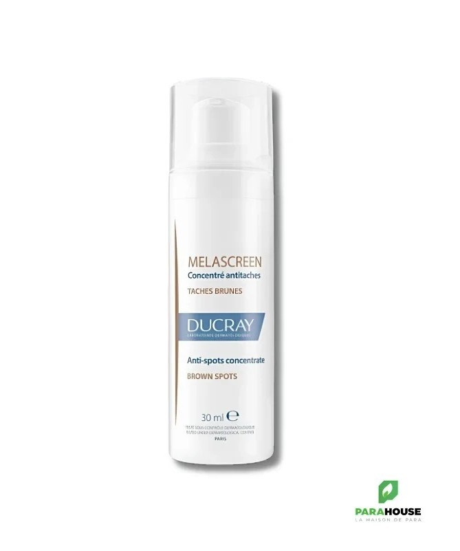 DUCRAY MELASCREEN Concentre anti taches 30ML | NOUVEAU DUCRAY MELASCREEN Concentre anti taches est la 1ère solution dermatologique globale hautement concentrée en actifs pour dépigmenter efficacement tous les types de taches brunes installées à chaque niveau de leur formation. Grâce à une très haute concentration en actifs dermatologiques dépigmentants (15%). Ils agissent directement à 3 différents niveaux sur les 3 facteurs responsables de leur formation : Niveau 1 : L’HESPERIDINE METHYLCHALCONE™ réduit la taille des vaisseaux sanguins superficiels. Niveau 2 : L’ACIDE AZELAÏQUE régule la surproduction de la mélanine à la source grâce à une action sélective. Niveau 3 : L’ACIDE GLYCOLIQUE favorise l'élimination des cellules mortes en surface pour réduire l'intensité des taches brunes. Parfaitement adapté pour offrir une dépigmentation sélective même sur les taches brunes les plus difficiles à corriger, DUCRAY MELASCREEN Concentre antitaches préserve la pigmentation naturelle de la peau. Le teint est plus uniforme et homogène à partir de seulement 2 semaines d’utilisation DUCRAY MELASCREEN Concentre antitaches sans parfum à la texture légère, au fini non gras et non collant doté d’une bonne tolérance adaptée à tous les types de peau. Convient aux femmes enceintes et allaitantes. Non comédogène et développé pour minimiser les risques allergiques. Composition : WATER (AQUA). AZELAIC ACID. CAPRYLIC/CAPRIC TRIGLYCERIDE. SQUALANE. PROPANEDIOL. GLYCERIN. GLYCOLIC ACID. GLYCERYL STEARATE. SODIUM HYDROXIDE. CETEARYL ALCOHOL. ARACHIDYL ALCOHOL. ARACHIDYL GLUCOSIDE. BEHENYL ALCOHOL. BENZOIC ACID. CETEARYL GLUCOSIDE. HELIANTHUS ANNUUS (SUNFLOWER) SEED OIL (HELIANTHUS ANNUUS SEED OIL). HESPERIDIN METHYL CHALCONE. SCLEROTIUM GUM. SODIUM CHLORIDE. TOCOPHEROL Conseils d'utilisation : Appliquer DUCRAY anti taches matin et soir sur le visage Appliquer matin et soir sur le décolleté Eviter le contact avec les yeux Éviter les expositions au soleil. En complément, appliquer une protection solaire spécifique quotidienne tels que les soins antitaches protecteurs SPF50+ MELASCREEN Utilisable par : Femmes enceintes - jeunes mamans - adultes Zone d'application : Visage - cou - décolleté Type de peau : Tous types de peau - peau hyperpigmentée Besoin : Antitaches brunes - dépigmentation des taches brunes