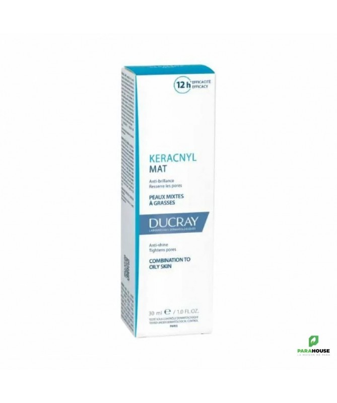 DUCRAY KERACNYL MAT ANTI-BRILLANCE DUCRAY KERACNYL MAT ANTI BRILLANCE pour les peaux mixtes à grasses combine un puissant effet anti-brillance avec une action longue durée de 12 heures. Ducray keracnyl mat contient un complexe unique d'agents matifiants et raffermissants qui offrent un effet matifiant immédiat et une longue tenue. La peau est rééquilibrée et sa brillance est réduite, la texture de la peau est améliorée et les pores sont resserrés. ETUDE CLINIQUE 98% de peau matifiée* (Efficacité perçue) 98% de grain de peau affiné* (Efficacité perçue) Effet matifiant durable Composition : WATER (AQUA)GLYCERINMAGNESIUM ALUMINIUM SILICATEPENTYLENE GLYCOL.ISOPROPYL MYRISTATESILICA.ARACHIDYL ALCOHOL.CETEARYL ALCOHOL,LACTAMIDE MEA1,2-HEXANEDIOLALGINARACHIDYL GLUCOSIDE.BEHENYL ALCOHOLCAPRYLYL GLYCOL.CARBOMERCETEARETH-33FRAGRANCE (PARFUM)GLYCERYL LAURATE,PAPAINTOCOPHERYL ACETATEXANTHAN GUMX-PRESSIN PRINCIPAUX ACTIFS POUDRES MATIFIANTES : Ingrédients reconnus pour leur effet matifiant immédiat MONOLAURINE : Actif reconnu pour son effet matifiant longue durée Conseils d'utilisation : Il est indiqué d'appliquer DUCRAY KERACNYL MAT matin et /ou soir sur une peau sèche et nettoyée. Idéal comme base de maquillage. Idéal pour matifier les peaux brillantes, les zones T (front, nez, menton)