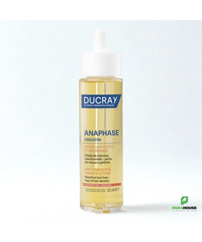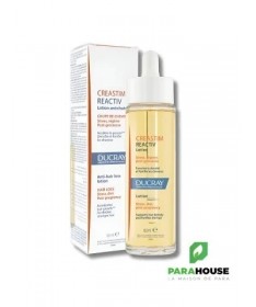 DUCRAY CREASTIM REACTIV Lotion Antichute 60ML Ducray Creastim est un soin inédit pour diminuer significativement la chute de cheveux et réactiver la pousse. Avec CREASTIM lotion antichute, la chevelure retrouve densité, force et vitalité. DUCRAY CREASTIM REACTIV Lotion Antichute est un soin capillaire recommandé en cas d’une chute de cheveux réactionnelle survenue à la suite d’une grossesse, d’un stress important ou liée à la fatigue ou au changement de saison. Sa formule innovante agit au niveau du bulbe pilaire et sur la qualité de la kératine de la fibre capillaire. STIMULE la croissance des cheveux AIDE à ralentir la chute de cheveux RENFORCE la fibre capillaire DENSIFIE et sublime la chevelure Résultats : Efficacité antichute perçue dès le 1er mois Chevelure plus dense : 82% Cheveux plus résistants : 89% COMPOSITION : WATER (AQUA). ALCOHOL DENAT.. HEXYLENE GLYCOL. PENTYLENE GLYCOL. POLYGLYCERYL-4 CAPRATE. ACETYL TETRAPEPTIDE-2. BIOTIN. CARAMEL. CREATINE. DEXTRAN. FRAGRANCE (PARFUM). PANTHENOL. PANTOLACTONE. PYRIDOXINE HCL. TOCOPHERYL NICOTINATE Conseils D'utilisation: Appliquer DUCRAY CREASTIM REACTIV 3 fois par semaine pendant 2 mois Chute de cheveux occasionnelle Peut être utilisé sur des cuirs chevelus sensibilisés par des traitements anti-cancéreux Peut être utilisé par les femmes enceintes (à partir du 2nd trimestre) et femmes allaitantes