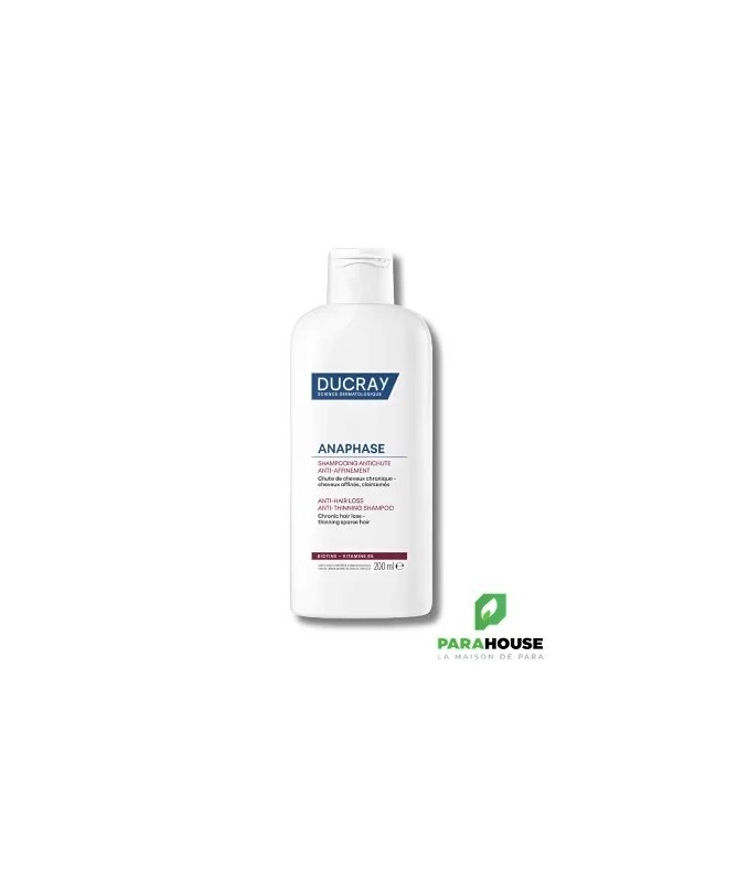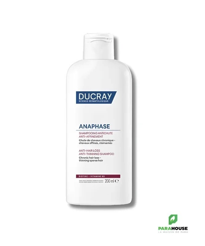 DUCRAY-ANAPHASE+ Shampooing stimulant antichute Anaphase + Shampooing complément antichute est le shampooing anti-chute qui complète l'action antichute et fortifiante des traitements (lotions et compléments nutritionnels) Très bien toléré, il peut être utilisé aussi souvent que souhaité. Le shampooing complémentaire anti-chute ANAPHASE - DUCRAY aide à traiter la chute des cheveux, ajoute du volume et renforce vos cheveux. Il allie la puissance d'une technologie avancée au savoir- faire d'experts pour redonner brillance, force et vitalité aux cheveux tout en prévenant toute nouvelle dégradation. Resultats: 90% trouvent que le shampooing stimule la pousse de leur cheveux 88% perçoivent une diminution de la chute après 6 semaines d'utilisation Composition : Monolaurine : Actif qui freine la chute des cheveux Ruscus : Actif qui stimule la micro-circulation au niveau du cuir chevelu Biotine : Actif qui contribue à maintenir les cheveux en bon état B6 : Actif qui contribue à la synthèse normale de la cystéine Formule biodégradable (selon la norme internationale OCDE 301B) AQUA, ACRYLATES COPOLYMER, SODIUM LAURETH SULFATE, GLYCERIN, PYRIDOXINE HCL, RUSCUS ACULEATUS ROOT EXTRACT, PANTHENOL, PANTOLACTONE, SODIUM COCOAMPHOACETATE, CETEARETH-60 MYRISTYL GLYCOL, PEG-40 HYDROGENATED CASTOR OIL, ALCOHOL, BIOTIN, BETAINE,CITRIC ACID, PARFUM, GLYCERYL LAURATE, GLYCOL DISTEARATE, HYDROLYZED WHEAT PROTEIN, PHENOXYETHANOL, POLYQUATERNIUM-7,, SALICYLIC ACID, SODIUM BENZOATE, SODIUM CHLORIDE, SODIUM HYDROXIDE, TOCOPHERYL NICOTINATE Conseils d'utilisation : Shampooing Ducray Anti chute peut être utilisé aussi souvent que souhaité puisqu'il est Très bien toléré : Appliquer, faire mousser, rincer. Renouveler l’application en laissant agir 2 à 3 minutes. Appliquer ensuite votre traitement antichute.