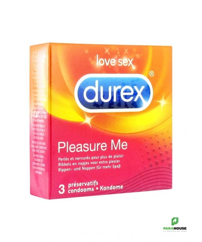 DescriptionDurex Pleasure Me 3 Préservatifssont des préservatifs qui ont une texture à la fois nervurée et perlée tout à fait unique pour une plus grande stimulation des deux partenaires.Cette texture associée à une forme profilée 'easy-on', procure aux deux partenaires un plaisir particulièrement intense. Ces préservatifs sont transparents, perlés et nervurés, avec réservoir et lubrifiés.