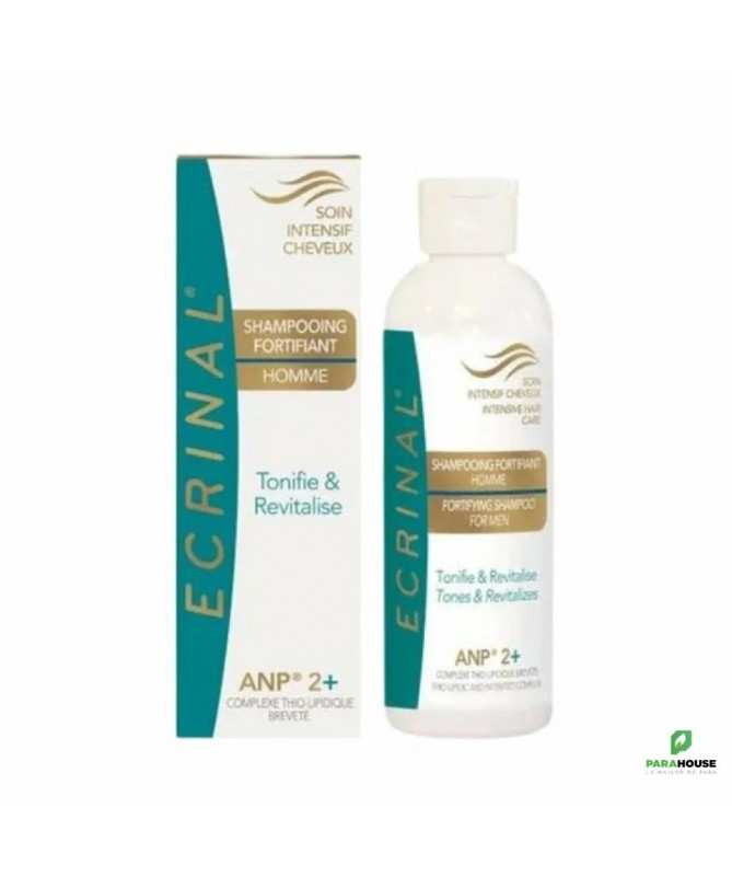 ECRINAL LOTION FORTIFIANTE HOMME 200ML ECRINAL LOTION FORTIFIANTE HOMME est une lotion à l’A.N.P®2+ qui fortifie la fibre capillaire et stimule le cuir chevelu. Les cheveux retrouvent ainsi douceur et brillance. Très rapidement, ils redeviennent sains sur toute leur longueur. D’un parfum frais, doux et raffiné son utilisation est très agréable. ECRINAL LOTION FORTIFIANTE HOMME est indiquee pour traiter les cuirs chevelus clairsemés, cheveux dévitalisés. S’utilise en relais après un traitement anti-chute avec les Ampoules à l’A.N.P®2+ Composition : aqua (water), alcohol denat, isododecane, equus (horse mane tissue) extract, parfum (fragrance), citric acid, helianthus annuus (sunflower) seed oil, CI 75810 (chlorophyllin-copper complex), limonene, linalool, citral, hydroxycitronellal, eugenol, benzyl alcohol, geraniol. Conseils d'utilisation : ECRINAL LOTION FORTIFIANTE peut s’utiliser quotidiennement. Agiter le flacon puis répartir sur le cuir chevelu. Frictionner légèrement du bout des doigts. Eventuellement sécher les cheveux puis coiffer.