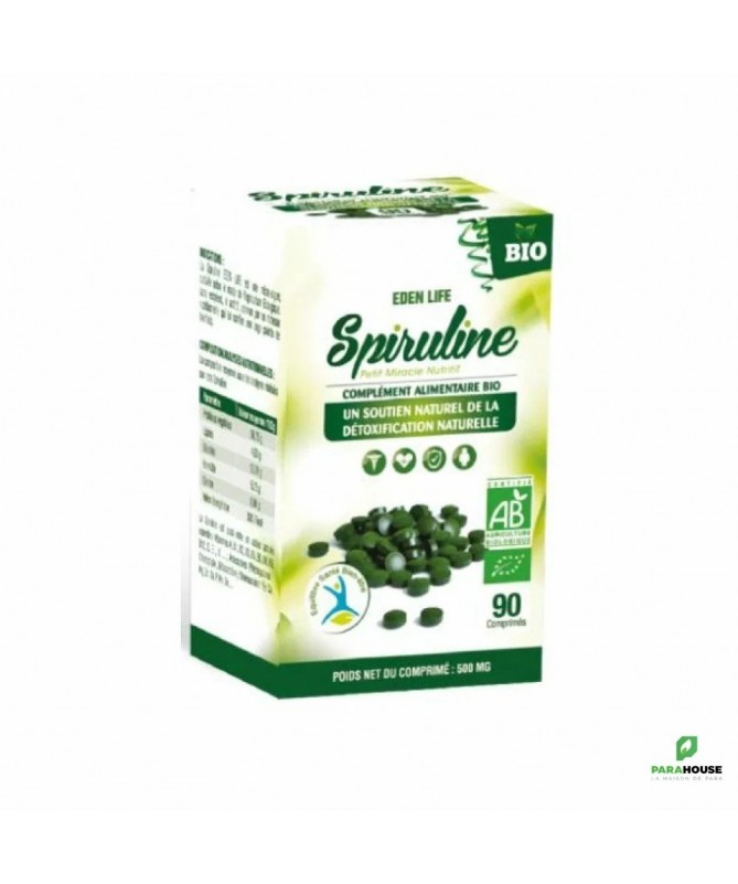 Eden Life Spiruline 180 Comprimes Eden Life Spiruline est une micro-algue, cultivée selon le mode de l’agriculture Biologique, sans excipient, ni additif, aconnue par sa richesse nutritionnelle qui lui confère une large palette de bienfaits. La spiruline est une variété de micro-algue à très forte teneur en Protéines et d’une richesse nutritive exceptionnelle en acides aminés essentiels, en vitamines et minéraux. Elle permet de retrouver un Bien-être général en apportant Tonus et Vitalité, elle favorise la récupération physique et renforce les systèmes immunitaires. La spiruline fournit de l’énergie et de la force, stimule le système immunitaire et augmente la protection anti-oxydante. C’est un « aliment-santé » que l’on utilise dans un régime sportif, intellectuel, diététique et nutritionnel. La spiruline est particulièrement recommandée aux sportifs, aux femmes enceintes, aux enfants et adolescents, aux végétariens, aux personnes fatiguées et stressées, pour les personnes obèses qui désirent perdre du poids, pour les personnes en convalescence et pour les personnes âgées. La Spiruline EDEN LIFE est produite en Tunisie, par un staff technique hautement qualifié, selon les règles les plus strictes en matière d’hygiène et dans le respect des principes fondamentaux du développement durable. Composition : La Spiruline BIO est riche en protéines (66%), acides aminés essentiels ; Vitamines B1, B2, B3, B5, B6, B8, B9, B12, K et E ; Antioxydants (Phycocyanines ; Chlorophylle A, Bétacarotène, Dismutase) et Minéraux dont : Ca, P, Mg, Mn, Se, Zn …7 Conseils d'utilisation : Adulte : 4 à 8 comprimés par jour en 1 ou 2 prises Enfant : 2 à 4 comprimés par jour en 1 ou 2 prises Il est recommandé de commencer par prendre une dose de 2 c/jour pendant les premiers jours et d’augmenter la dose graduellement. A conserver dans son emballage à température ambiante et à l’abri de la chaleur et de l’humidité. La Spiruline est un complément alimentaire. Ne se substitue pas à une alimentation variée et équilibrée, ni à un mode de vie sain. Pour votre santé, pratiquez une activité physique régulière. Les comprimés de spiruline bio sont particulièrement faciles à ingérer, notamment pour les femmes enceintes et les sportifs en plein effort. Facile à emporter sans vous soucier du mode de conservation . Enfin, le conditionnement sous forme de comprimés facilitera le dosage de vos prises de spiruline, que vous souhaitiez réaliser une cure ponctuelle ou intégrer la spiruline à votre régime quotidien,