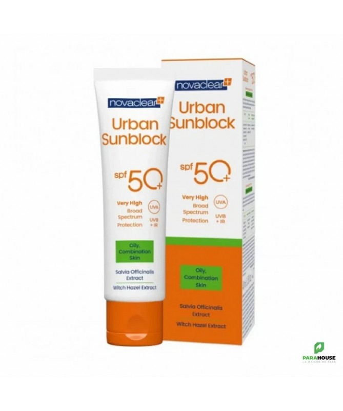 NOVACLEAR URBAN SUNBLOCK OILY SKIN SPF50+ 40ML NOVACLEAR URBAN SUNBLOCK SPF50+ offre une très haute protection contre les rayons UVA, UVB et IR nocifs pour la peau et convient aux peaux grasses et mixtes. La formule, enrichie en extrait de sauge et d'hamamélis, régule la sécrétion de sébum. NOVACLEAR spf 50 ne contient pas de parfum et est absorbé très rapidement, ce qui le rend idéal pour une utilisation sous le maquillage. Effets : Fournit une protection élevée contre les rayons UV Ne laisse pas de plâtre blanc, idéal sous le maquillage Régule la sécrétion de sébum Composition : Extrait de sauge Extrait d'hamamélis Aqua, Octocrylene, Ethylhexyl Methoxycinnamate, Dibutyl Adipate, Butyl Methoxydibenzoylmethane, Methylene Bis-Benzotriazolyl Tetramethylbutylphenol (nano), Cetearyl Alcohol, Ethylhexyl Salicylate, Benzophenone-3, Glyceryl Stearate SE, Coco-Caprylate, Propylene Glycol, Ceteareth-20, Dimethicone, Xanthan Gum, Cyclopentasiloxane, Ethylhexylglycerin, Phenoxyethanol, Triethanolamine, Decyl Glucoside, Hamamelis Virginiana Bark/Twig Extract, Salvia Officinalis Flower/Leaf/Stem Extract, Ceteth-10 Phosphate, Cyclohexasiloxane, Diacetyl Phosphate, Benzyl Alcohol Conseils d'utilisation : Appliquez généreusement Novaclear Sunblock sur le visage 30 minutes avant l'exposition au soleil. Renouvelez l'application toutes les 2 heures. Ne restez pas trop longtemps au soleil, même en utilisant un produit de protection solaire. Contient de la benzophénone-3. Pour usage externe uniquement.