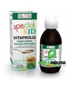 La gammeSPECIAL KIDrépond spécifiquement aux petits désagréments rencontrés par nos enfants au quotidien dont les coups de froid. La vitamine C contenue dansVITAPROLIScontribue à réduire la fatigue ainsi qu’au fonctionnement normal du système immunitaire.CONSEILS D’UTILISATION :Avant 5 ans :prendre 5 ml (une cuillère à café) par jour, le matin.Après 5 ans :prendre 10 ml (une cuillère à soupe) par jour, le matin. Bien agiter avant emploi. Peut être pris pur ou dilué dans un verre d’eau ou une autre boisson.PRÉCAUTIONS D’EMPLOINe pas dépasser la dose journalière recommandée. Tenir hors de portée des jeunes enfants. A utiliser dans le cadre d’une alimentation diversifiée et d’un mode de vie sain. A conserver à l’abri de la lumière, de l’humidité et de la chaleur.PRÉSENTATION GALÉNIQUE :Flacon de 125 mlPour 1 dose de 10 ml :Extrait aqueux de sureau :1400 mgExtrait aqueux de tilleul :1400 mgExtrait d’acérola :172.8 mgSoit en vitamine C :36 mgJus de citron :100 mgExtrait de propolis :50 mgBromélaïne :40 mgPapaïne :40 mgMiel :800 mg