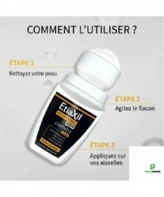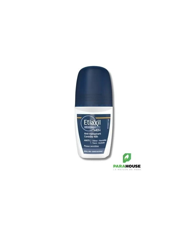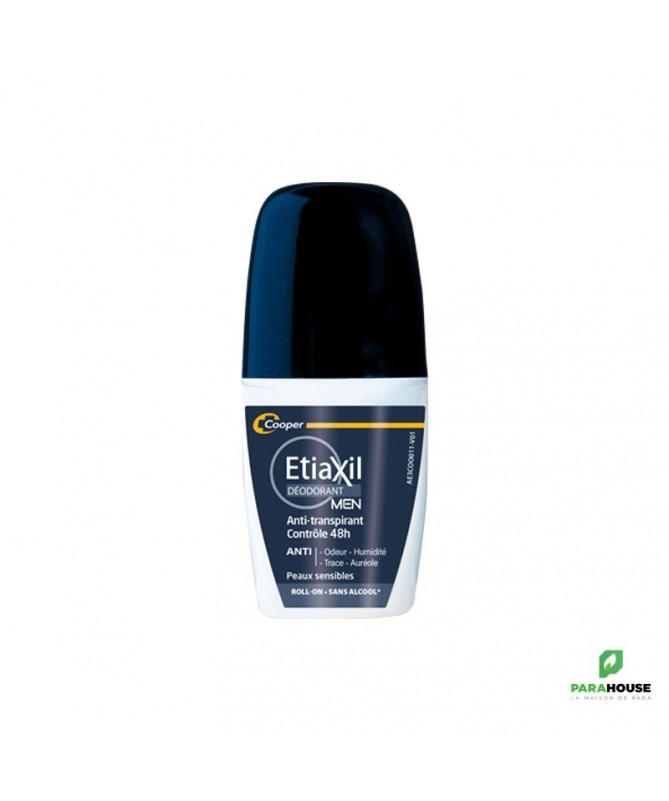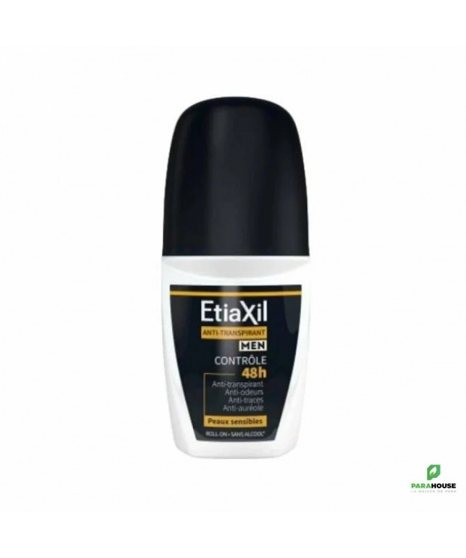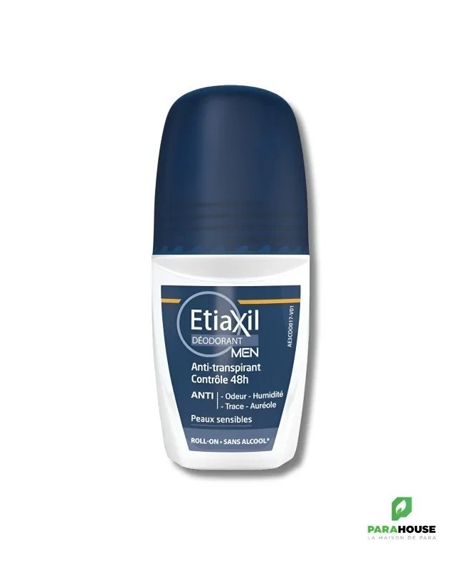 ETIAXIL DEODORANT MEN ANTI TRANSPIRANT CONTROLE 48H 40ML ETIAXIL DEODORANT MEN est conçu pour un usage quotidien contre la transpiration modérée.Son efficacité prouvée cliniquement1 limite la transpiration, les odeurs jusqu’à 48H. Son pouvoir absorbant est renforcé grâce au magnésium trisilicate et un complexe végétal anti-sudoral. Testé dermatologiquement, ce produit est formulé sans alcool et enrichi en agent apaisant pour maximiser le confort de tous les types de peaux, même sensibles, tout en laissant un parfum frais aux notes boisées. Sa formule haute tolérance est aussi anti-traces. Composition : Aqua, Aluminium Sesquichlorohydraten Glycerin, PPG-15 Stearyl Ether, Steareth-2, Parfum, Steareth-21, 2-Methyl 5-Cyclohexylpentanol, Bisabolol, Diatomaceous Earth, Magnesium Trisilicate, Malodextrin, Equisetum Arvense Extract, Salvia Officinalis Oil. Conseil d'utilisation : Appliquer tous les jours sur peau propre. Ne pas appliquer sur une peau irritée. À conserver à l'abri de la chaleur.