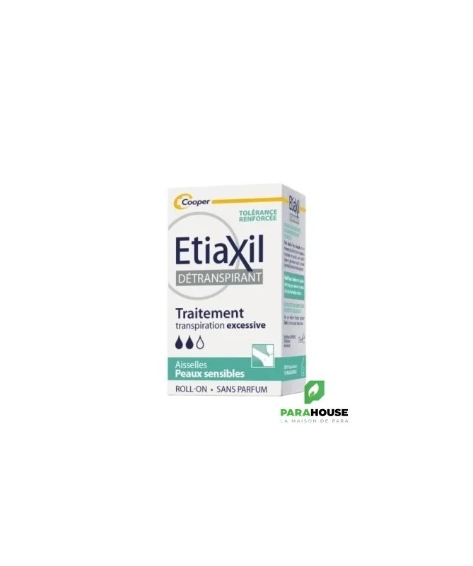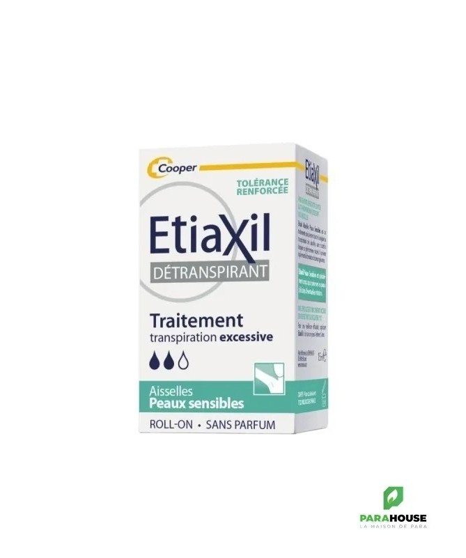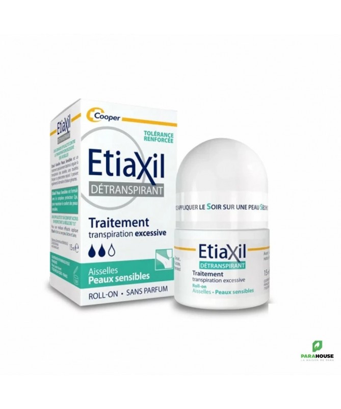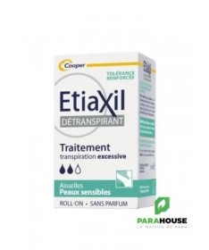 Etiaxil Détranspirant Aisselles Peaux Sensibles Roll-on 15ML Etiaxil Détranspirant Aisselles est cliniquement prouvé pour contrôler la transpiration excessive pendant plus 5 jours. Ciblé sur les aisselles, il stoppe la transpiration et permet ainsi d'empêcher la sueur d'atteindre vos vêtements, tout en garantissant une efficacité maximale contre la transpiration excessive. Appliqué sur les aisselles, Etiaxil permet de mettre au repos les glandes sudoripares, qui cessent alors de produire de la sueur pendant quelques jours. Une formule à la tolérance renforcée grâce au complexe protecteur CPx limite le risque d’irritations cutanées et maximise le confort des peaux sensibles Sans parfum, etiaxil aisselles est compatible avec l’usage d’un déodorant ou d’un parfum au quotidien. Efficacité prouvée cliniquement : anti-humidité et anti-odeurs. Complexe CPx qui limite les irritations cutanées et maximise le confort des peaux sensibles Composition : Alcohol Denat., Aluminum Chloride, Calcium Lactate, Hydroxypropylcellulose, Hydrogenated Castor Oil Conseils d'utilisation : Appliquez Etiaxil sous les aisselles en respectant la règle des « 3 S » : Appliquer le Soir Sur une peau Sèche Sur une peau Saine Informations complémentaires : Laissez sécher naturellement à l’air. Le lendemain matin, rincez à l’eau et au savon. En début de traitement, appliquez Etiaxil tous les soirs. Lorsque le niveau de confort souhaité est atteint (normalement en 2 à 3 jours), appliquez Etiaxil 2 à 3 fois par semaine. L’arrêt définitif du traitement entraîne la disparition de l’efficacité du produit et il convient alors de reprendre le traitement depuis le début. Ne pas utiliser ce produit chez l’enfant, sans l’avis et le conseil d’un pharmacien ou d’un médecin