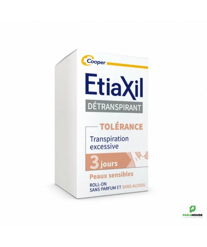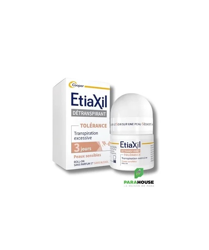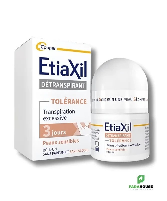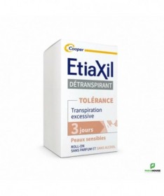 Etiaxil Détranspirant Tolerance Confort+ Aisselles Roll-on 15ML Etiaxil Détranspirant Confort+ a été conçu pour traiter efficacement la transpiration forte des aisselles (due au stress, activités sportives, chaleur, perturbations hormonales, etc…), tout en respectant les peaux sensibles et délicates. L'efficacité prouvée de Etiaxil Détranspirant Confort+ stoppe la transpiration de 2 à 3 jours et assure ainsi un contrôle total, anti-humidité et anti-odeur. Formulé sans alcool et enrichi en émollients naturels pour maximiser le confort des peaux les plus sensibles. Ce produit est sans parfum et compatible avec l’usage d’un déodorant ou d’un parfum au quotidien Composition : Aqua, Aluminum Chloride, Dipropylheptyl Carbonate, PPG-20 Methyl Glucose Ether, C15-19 Alkane, Glycerin, Polyacrylate Crosspolymer-6, Tocopherol, Sodium Hydroxide Conseils d'utilisation : Appliquez Etiaxil sous les aisselles en respectant la règle des « 3 S » : Appliquer le Soir Sur une peau Sèche Sur une peau Saine Informations complémentaires : Laissez sécher naturellement à l’air. Le lendemain matin, rincez à l’eau et au savon. En début de traitement, appliquez Etiaxil tous les soirs. Lorsque le niveau de confort souhaité est atteint (normalement en 2 à 3 jours), appliquez Etiaxil 2 à 3 fois par semaine. L’arrêt définitif du traitement Etiaxil Détranspirant Confort+ entraîne la disparition de l’efficacité du produit et il convient alors de reprendre le traitement depuis le début. Ne pas utiliser ce produit chez l’enfant, sans l’avis et le conseil d’un pharmacien ou d’un médecin