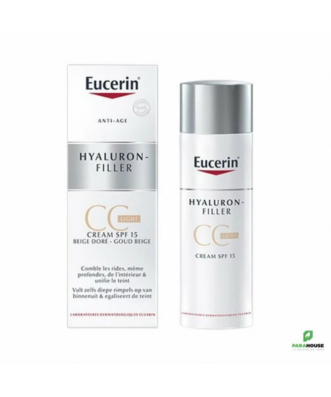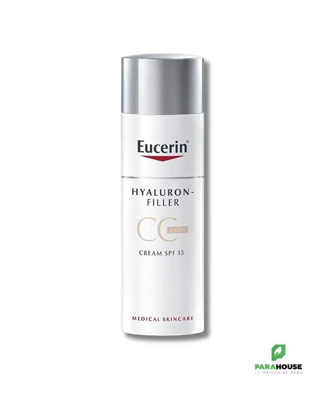 EUCERIN HYALURON-FILLER CC Cream Light EUCERIN HYALURON-FILLER CC Cream Light est un correcteur de teint permet d'uniformiser le teint, elle offre également un soin anti-rides efficace. L'efficacité anti-rides maintenant dans un correcteur de teint. Un soin de jour anti-rides incorporant des pigments aux dominantes beige dorées pour obtenir un teint plus unifié et plus lumineux. EUCERIN HYALURON-FILLER CC Cream Light ne se contente pas d'uniformiser le teint, elle offre également un soin anti-rides efficace. Soin anti-rides : La formule associe de l'Acide Hyaluronique de haut et de faible poids moléculaire, pour agir à la source de la formation des rides, et de la Glycine Saponine, un ingrédient bio-actif, qui stimule la production naturelle d'acide hyaluronique de la peau. La protection anti-UVB (SPF 15) et anti-UVA prévient de manière efficace le vieillissement cutané prématuré causé par les rayons UV. La peau est visiblement plus lisse. Correction du teint : Les pigments à dominante beige doré offrent un teint plus homogène en corrigeant instantanément l'apparence de la peau. La couvrance est homogène, sans marques, et constitue une excellente base de maquillage avant l'application du fond de teint (si une couvrance supplémentaire est nécessaire) ou d'autres produits de make-up. EUCERIN HYALURON-FILLER CC Cream Light a une texture non grasse qui fond sur la peau et elle peut être utilisée en remplacement ou en complément de votre soin hydratant habituel. Des tests cliniques et dermatologiques ont démontré qu'elle convient à tous les types de peau. Composition: Aqua Dicaprylyl Carbonate Glycerin Ethylhexyl Salicylate CI 77891 Dimethicone Butyl Methoxydibenzoylmethane Ethylhexyl Triazone Homosalate Methylpropanediol ALCOHOL-DENAT Cetearyl Alcohol Glycine Soja Germ Extract Bis-Ethylhexyloxyphenol Methoxyphenyl Triazine Sodium Hyaluronate Sodium Acrylates-C10-30 Alkyl Acrylate Crosspolymer AMMONIUM-ACRYLOYLDIMETHYLTAURATE-VP-COPOLYMER Sodium Carbomer Sodium Stearoyl Glutamate Dimethiconol Sodium Chloride Trisodium EDTA BHT 1-2-Hexanediol Phenoxyethanol Parfum CI 77492 CI 77491 CI 77499 Conseils d'Utilisation: Il est recommandé d'Appliquer sur le visage bien nettoyé en étalant délicatement sur la peau de manière homogène. Peut être utilisée seule ou après votre soin habituel, selon votre type de peau.