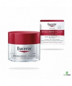 EUCERIN HYALURON-FILLER + VOLUME-LIFT Soin de Jour Peau Sèche EUCERIN HYALURON FILLER VOLUME LIFT Soin de Jour Peau Sèche nourrissant et volumisateur à base de Magnolol, d'Oligo Peptides et d'Acide Hyaluronique qui lutte contre les différentes causes responsables de la perte de volume pour peaux sèches avec protection UVA/UVB SPF 15 EUCERIN HYALURON FILLER VOLUME LIFT Soin de Jour Peau Sèche contient trois ingrédients actifs spécialement reconnus pour leurs actions face à la perte de volume et au relâchement cutané. EUCERIN HYALURON FILLER VOLUME LIFT associe du Magnolol, un actif dérivé de la nature, qui augmente la taille et le nombre de cellules responsables du volume cutané, à des Oligo Peptides, qui dynamisent le renouvellement du collagène*. L'Acide Hyaluronique améliore par ailleurs la capacité de la peau à retenir l'eau pour repulper la surface de la peau et réduire les rides. HYALURON VOLUME LIFT contient une protection SPF15 et des filtres UVA pour protéger la peau du photovieillissement. Composition : Aqua Glycerin Butyrospermum Parkii Butter Ethylhexyl Salicylate Butyl Methoxydibenzoylmethane Dibutyl Adipate Cetearyl Alcohol Methylpropanediol Phenylbenzimidazole Sulfonic Acid C12-15 Alkyl Benzoate ALUMINUM-STARCH-OCTENYLSUCCINATE Arginine HCL Bis-Ethylhexyloxyphenol Methoxyphenyl Triazine Hydrogenated Coco-Glycerides Synthetic Beeswax Magnolia Officinalis Bark Extract Pimpinella Anisum Fruit Extract Sodium Hyaluronate Methyl Methacrylate Crosspolymer Alkyl Acrylate Crosspolymer Carbomer Sodium Stearoyl Glutamate Sodium Chloride Trisodium EDTA Sodium Hydroxide Ethylhexylglycerin 1-2-Hexanediol Phenoxyethanol Parfum Conseils d'Utilisation : Il est recommandé d'Appliquer HYALURON VOLUME LIFT sur la peau bien nettoyée. Appliquer sur le visage, le cou et le décolleté. Masser en faisant des mouvements fermes et en remontant vers le haut du visage jusqu'à pénétration du produit. Appliquer ensuite EUCERIN HYALURON FILLER VOLUME LIFT Soin Contour des Yeux. Patientez cinq à dix minutes avant de vous maquiller pour laisser au soin le temps de pénétrer dans la peau.