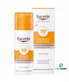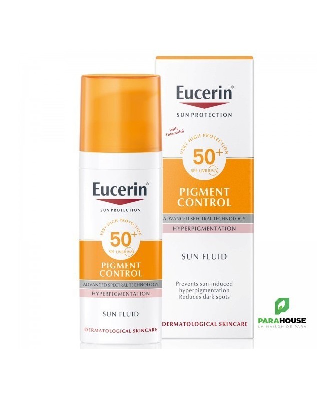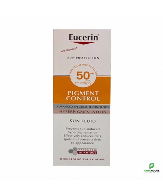 EUCERIN SUN PROTECTION PIGMENT CONTROL FLUID SPF 50+ EUCERIN PIGMENT CONTROL FLUID réduit efficacement les taches brunes et prévient leur réapparition. L'Advanced Spectral Technology d'Eucerin offre une haute protection contre les UVA / UVB et une défense contre la Lumière Visible de Haute Energie (HEVIS). La protection solaire soutient également le propre mécanisme de réparation de l'ADN de la peau. Eucerin PIGMENT CONTROL est un ecran solaire quotidien pour le visage, destiné à tous les types de peau, qui aide à prévenir l'hyperpigmentation induite par le soleil. L'Advanced Spectral Technology combine des filtres UVA/UVB à large spectre et photostables** pour une très haute protection contre les UV avec de la Licochalcone A pour neutraliser les radicaux libres causés par les UV et la lumière HEVIS. L'écran solaire comprend également de l'Acide Glycyrrhétinique qui soutient le mécanisme de réparation de l'ADN de la peau. La formule est également enrichie de Thiamidol, un ingrédient efficace et breveté qui agit à la racine de l'hyperpigmentation. Il réduit visiblement les taches brunes au fil du temps et, lorsqu'il est utilisé régulièrement, empêche leur réapparition. Eucerin SUN PIGMENT CONTROL Fluid SPF 50+ a une texture légère et agréable qui est rapidement absorbée et dont il est prouvé cliniquement et dermatologiquement qu'elle est bien tolérée, même par les peaux sensibles. Composition : Aqua, C12-15 Alkyl Benzoate, Alcohol Denat, Butyl Methoxydibenzoylmethane, Ethylhexyl Triazone, Butylene Glycol Dicaprylate/Dicaprate, Bis-Ethylhexyloxyphenol Methoxyphenyl Triazine, Dibutyl Adipate, Glyceryl Stearate Citrate, Silica, Phenylbenzimidazole Sulfonic Acid, Diethylamino Hydroxybenzoyl Hexyl Benzoate, Tapioca Starch, Silica Dimethyl Silylate, Cetearyl Alcohol, Behenyl Alcohol, Isobutylamido Thiazolyl Resorcinol, Glycyrrhiza Inflata Root Extract, Acide glycyrrhétinique, Tocopheryl Acetate, Glycerin, Copernicia Cerifera Cera, Xanthan Gum, Carrageenan, Hydroxypropyl Methylcellulose, Sodium Hydroxide, Trisodium EDTA, Hydroxyacetophenone, Phenoxyethanol, Ethylhexylglycerin, Parfum Conseils d'utilisation : Appliquez généreusement et uniformément eucerin creme solaire pigment control sur le visage avant l’exposition au soleil et renouvelez fréquemment pour maintenir le niveau de protection, en particulier après vous être baigné, essuyé ou avoir transpiré. Réduire la quantité de produit solaire appliquée diminue significativement le niveau de protection. Ne restez pas trop longtemps au soleil, même si vous utilisez un produit de protection solaire. La surexposition au soleil est une menace sérieuse pour la santé. Évitez tout contact avec les yeux. Appliquez au maximum 4 fois par jour les produits avec du Thiamidol.