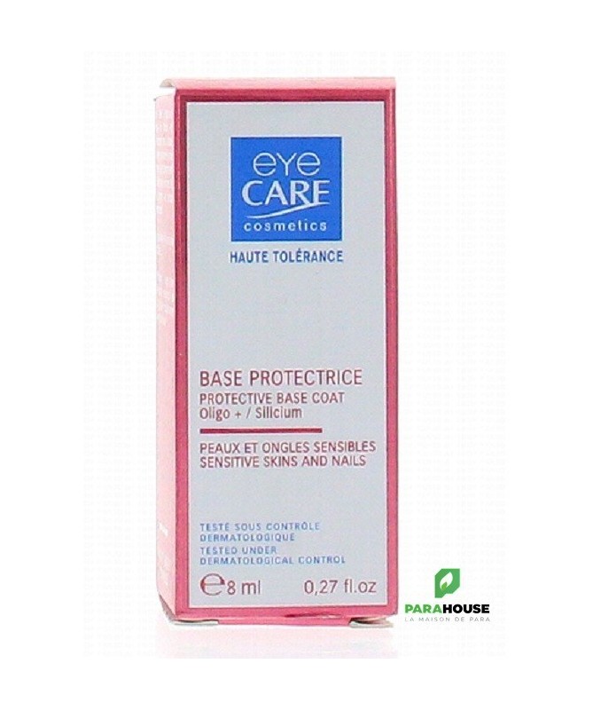 Eye Care Base Protectrice Peaux et Ongles Sensibles 8 mlLa Base Protectrice Eye Care est un soin spécialement formulé pour les ongles sensibles. Elle facilite l’application du vernis tout en prolongeant sa tenue.Sa formule enrichie enSiliciumet enOligo-Éléments(Soufre, Calcium, Zinc, Fer) renforce les ongles, les protège et prévient leur jaunissement. Elle lisse la surface de l’ongle en formant un film protecteur invisible.- Renforce et protège les ongles fragiles- Facilite l'application du vernis- Prévient le jaunissement de l’ongle- Formule haute tolérance : sans parfum, toluène, formol, colophane, conservateur, paraben, ni nickel