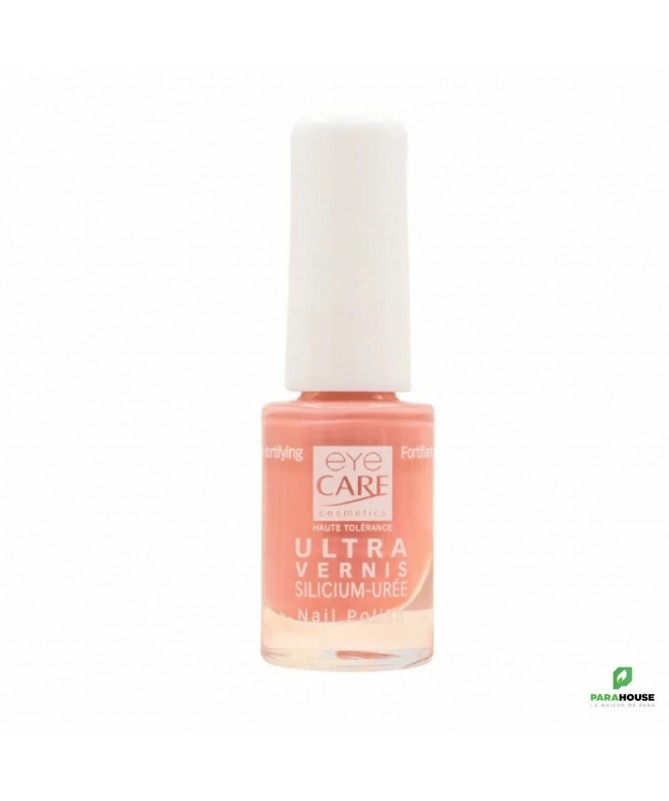 Eye care Ultra vernis à ongles Silicium-Urée Impatience Eye care Ultra vernis à ongles lutte contre le dessèchement grâce à ses 2 actifs silicium et l'urée. Le silicium qui protège. L'urée lutte contre le dessèchement et évite l'épaississement de l'ongle. Il sèche rapidement, insensible aux chocs. Il est sans formol et sans toluène. Indication : Maquillage des ongles Conseil d'utilisation : Il faut nettoyer la surface de l'ongle avant la'pplication. L'application de Eye care Ultra vernis à ongles se fait de l'intérieur vers l'extrémité de l'ongle.