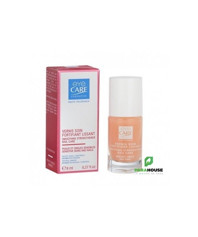 Eye care Vernis à ongles fortifiant lissant Eye care Vernis à ongles fortifiant fortifie et lisse l'ongle, il redonne aux ongles leur couleur naturelle. Il ne contient ni toluène, ni formol, ni conservateur, et ni colophane. De plus la bille contenue dans le flacon est sans nickel. Indication : Soin des ongles Conseil d'utilisation : Se laver les mains tout en démaquillant l'ongle. L'application du Eye care Vernis à ongles fortifiant lissant se fait en deux couches en commençant par la partie centrale puis les côtés des ongles. L'application se fait tous les jours pour de meilleurs résultats.