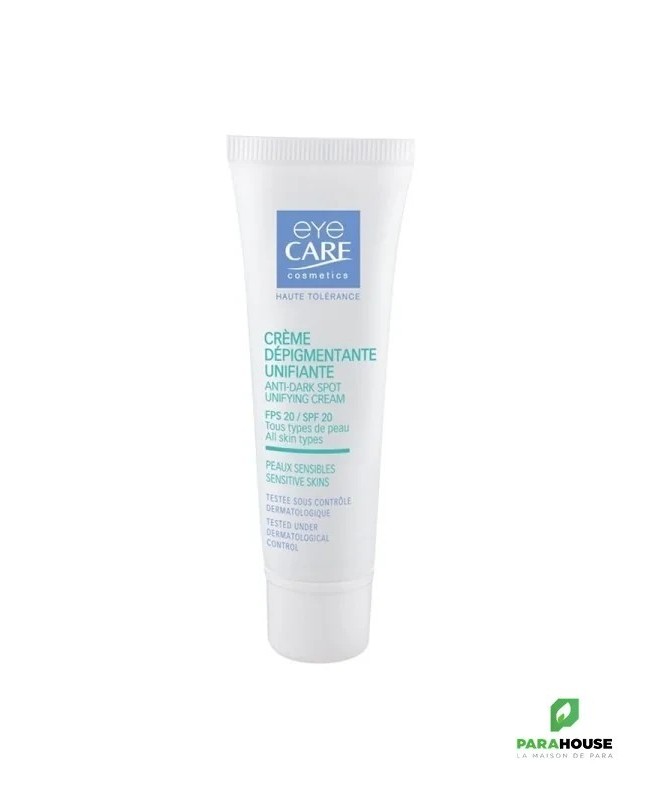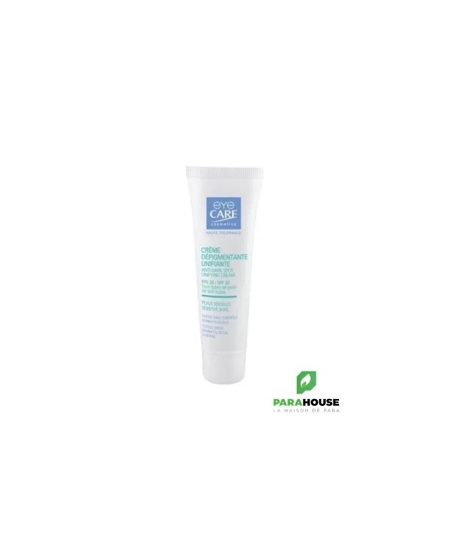 Découvrez notreEYE CARE CREME DEPIGMENTANTE UNIFIANTE SPF 20, une solution innovante pour un teint radieux et homogène. Spécialement formulée pour cibler les taches pigmentaires et unifier votre peau, cette crème dépigmentante est l'alliée idéale pour celles et ceux qui souhaitent retrouver un éclat naturel. Avec sa protection solaire SPF 20, elle préserve votre peau des effets néfastes des rayons UV, garantissant ainsi une défense optimale tout en luttant contre le vieillissement cutané.Sa texture légère et non grasse pénètre rapidement, offrant une hydratation durable et un confort immédiat. Enrichie d'ingrédients actifs, cette crème agit en profondeur pour corriger les imperfections et révéler un teint unifié et lumineux. Intégrez-la à votre routine quotidienne pour bénéficier d'une peau visiblement plus claire et éclatante. Prenez soin de votre regard avec notre crème dépigmentante et profitez d'une peau sublimée, protégée et resplendissante de santé.Optez pour notreEYE CARE CREME DEPIGMENTANTE UNIFIANTE SPF 20et transformez votre routine de soin en un moment de plaisir et d'efficacité !CompositionAqua (Water), Titanium Dioxide [nano], Coco-Caprylate/Caprate, Hydrogenated Polydecene, Bellis Perennis (Daisy) Flower Extract, Carthamus Tinctorius (Safflower) Seed Oil, Macadamia Integrifolia Seed Oil, Niacinamide, Simmondsia Chinensis (Jojoba) Seed Oil, Isostearyl Isostearate, Linoleic Acid, Magnesium Aluminum Silicate, Tocopheryl Acetate, Cetyl Alcohol, Glyceryl Stearate, Glycerin, Boron Nitride, PEG-75 Stearate, Hydroxyethylcellulose, Methylpropanediol, Levulinic Acid, Hydroxystearic Acid, Triethoxycaprylylsilane, Ceteth-20, Parfum (Fragrance), Sodium Dehydroacetate, Steareth-20, Phytic Acid, Sodium Levulinate, Dimethicone, Isododecane, Alumina, Retinyl Palmitate, Sodium Hyaluronate, Sodium Hydroxide, Ascorbyl Methylsilanol Pectinate, Linolenic Acid, Ethylene/VA Copolymer (CD01)