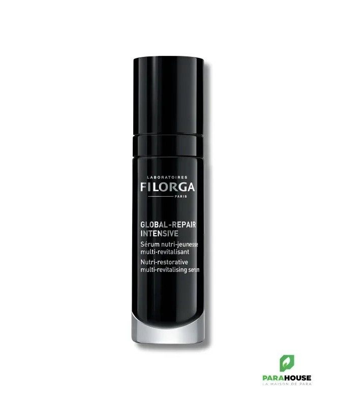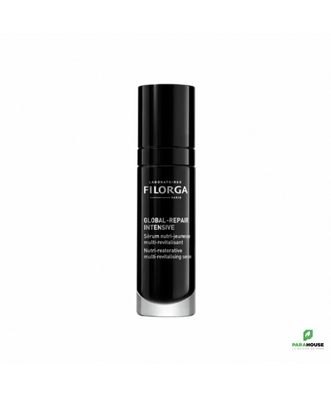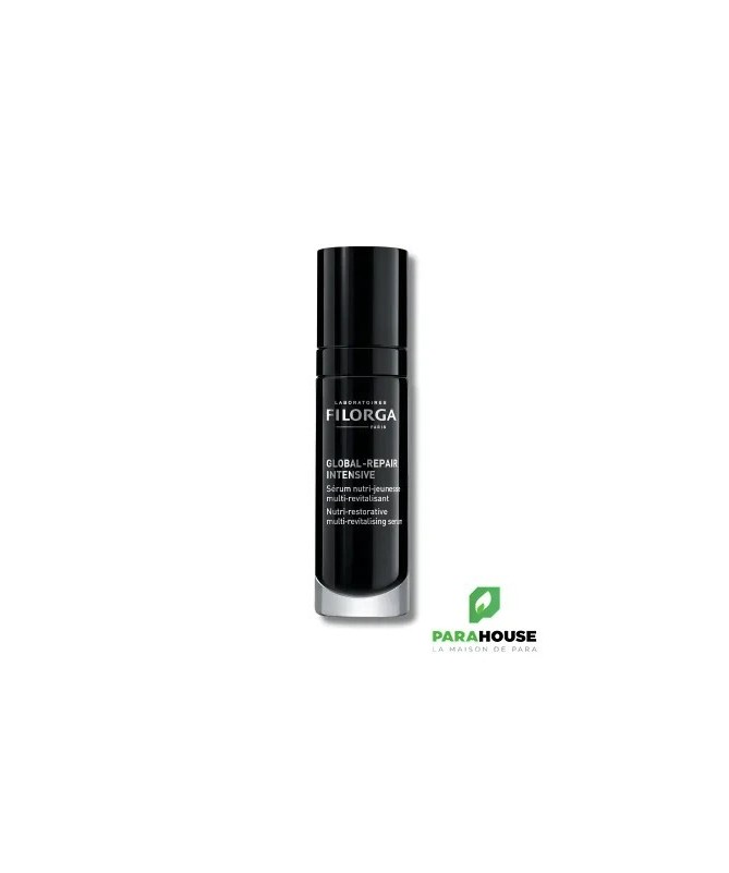 FILORGA GLOBAL REPAIR INTENSIVE - Serum Nutri-jeunesse FILORGA GLOBAL REPAIR INTENSIVE Serum est un sérum concentré nutri-Jeunesse et multi-Revitalisant, Il permet de revitaliser les peaux fatiguées, dévitalisées et qui manque de tonus. Avec un fini velours absolu qui convient à tous les types de peaux , FILORGA GLOBAL REPAIR SÉRUM offre une action globale et intense sur la déshydratation, les rides marquées, le manque de fermeté, l’ovale relâché, le manque d’homogénéité et le teint fatigué. Filorga global repair serum combine 50 méso-ingrédients + 4 boosters cellulaires inspirés des techniques de médecine esthétique apportant un effet repulpant visible. Il associe encore trois 3 super nutriments ( céramides + omégas + vitamines) qui permettent ensemble de nourrir, assouplir et donner de l’élasticité à la peau. La peau devient plus ferme, plus lumineuse et unifiée avec un ovale plus net. Résultats : 83% Peau lumineuse 80% Effet raffermissant 76% Pommettes remodelées Composition : Ingrédient :AQUA (WATER, EAU), PROPANEDIOL, ISOCETYL STEARATE, GLYCERIN, COCO-CAPRYLATE/CAPRATE, HYDROGENATED COCONUT OIL, ETHYLHEXYL PALMITATE, MALTODEXTRIN, PENTYLENE GLYCOL, MANNITOL, LECITHIN, LAURYL GLUCOSIDE, POLYGLYCERYL-6 LAURATE, LAUROYL LYSINE, XANTHAN GUM, PARFUM (FRAGRANCE), POTASSIUM PHOSPHATE, SODIUM HYALURONATE, CAPRYLYL GLYCOL, SORBITAN ISOSTEARATE, GLUCOSE, PHENOXYETHANOL, BISABOLOL, BHT, TOCOPHEROL, CITRIC ACID, POTASSIUM CHLORIDE, BETA-SITOSTEROL, PHYTIC ACID, SQUALENE, POTASSIUM SORBATE, CALCIUM CHLORIDE, BHA, ACETYL TETRAPEPTIDE-11, MAGNESIUM SULFATE, GLUTAMINE, ACETYL TETRAPEPTIDE-9, SODIUM PHOSPHATE, CI 15510 (ORANGE 4), ASCORBIC ACID, SODIUM ACETATE, LYSINE HCL, ARGININE HCL, ASCORBYL PALMITATE, ALANINE, HISTIDINE HCL, VALINE, LEUCINE, THREONINE, ISOLEUCINE, TRYPTOPHAN, PHENYLALANINE, TYROSINE, GLYCINE, SUCROSE DILAURATE, 1,2-HEXANEDIOL, MYRISTYL GLUCOSIDE, SCLEROTIUM GUM, SUCROSE PALMITATE, GLYCOGEN, PULLULAN, HYDROXYETHYL ACRYLATE/SODIUM ACRYLOYLDIMETHYL TAURATE COPOLYMER, SODIUM COCOYL GLUTAMATE, ISOHEXADECANE, LYSOLECITHIN, ALCOHOL, POLYSORBATE 20, RETINOL, GLYCERYL LINOLEATE, PAEONIA ALBIFLORA ROOT EXTRACT, PRUNUS AMYGDALUS DULCIS (SWEET ALMOND) OIL, PISUM SATIVUM (PEA) EXTRACT, SODIUM CHLORIDE, BORAGO OFFICINALIS SEED OIL, CAMELLIA OLEIFERA SEED OIL, HEXAMIDINE DIISETHIONATE, OENOTHERA BIENNIS (EVENING PRIMROSE) OIL, SIMMONDSIA CHINENSIS (JOJOBA) SEED OIL, SILICA, TRIHYDROXYSTEARIN, NIACINAMIDE , 3-O-ETHYL ASCORBIC ACID, LACTOBACILLUS FERMENT, POTASSIUM AZELOYL DIGLYCINATE, POLYSORBATE 60, CERAMIDE NP, POLYSORBATE 80, GLUCOMANNAN, SERINE, CYSTINE, CYANOCOBALAMIN, GLUTATHIONE, ASPARAGINE, ASPARTIC ACID, ORNITHINE HCL, GLUTAMIC ACID, NICOTINAMIDE ADENINE DINUCLEOTIDE, PROLINE, CI 17200 (RED 33), METHIONINE, TAURINE, HYDROXYPROLINE, GLUCOSAMINE HCL, COENZYME A, SODIUM GLUCURONATE, THIAMINE DIPHOSPHATE, RETINYL ACETATE, INOSITOL, NIACIN, PYRIDOXINE HCL, BIOTIN, CALCIUM PANTOTHENATE, RIBOFLAVIN, SODIUM TOCOPHERYL PHOSPHATE, THIAMINE HCL, FOLIC Formulé avec 96% d'ingrédients d'origine naturelle. Testé sous contrôle dermatologique. Conseils d'utilisation : Il est conseillé d'appliquer une couche fine de filorga serum global repair sous la crème le matin. Il est conseillé de mélanger le sérum avec la crème GLOBA REPAIR dans le creux de la main puis étaler une couche épaisse comme un masque, laisser pénétrer toute la nuit. Formulé pour les peaux matures et peaux sèches.