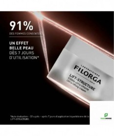 FILORGA LIFT STRUCTURE Creme Ultra Liftante 50ML Filorga Crème Ultra Liftante - Fermeté Absolue UNE CRÈME ULTRA-LIFTANTE FORMULÉE À BASE D’ACTIFS ISSUS DES PROCÉDURES ESTHÉTIQUES POUR UN EFFET ANTI-ÂGE RADICAL. FILORGA LIFT STRUCTURE creme ultra liftante qui traite le raffermissement cutané. La Créme filorga Lift Structure se carecterise par une te xture crème ultra-confort à la fois riche et fine qui glisse sur la peau et lui apporte nutrition, Sa texture high-tech allie finesse et confort pour un effet « belle peau » et lui apporte un éclat instantané. Efficacité liftante surprenante [traits lissés + volumes redéfinis] : intégré pour la première fois dans une crème, le Filorga Plasmatic Lifting Factors® associe [Facteurs cellulaires + Collagène + Acide hyaluronique] pour retendre visiblement les traits, repulper la peau et sculpter les volumes. Action raffermissante intensive : issu des dernières recherches en biotechnologie, un duo d’actifs végétaux stimule les composants majeurs de la peau pour lui redonner tonicité et fermeté. / EFFET LIFTANT VISIBLE DÈS 7 JOURS** ! 91% Peau plus lisse 77% Peau raffermie 73% Effet repulpant 73% Visage remodelé 91% Effet belle peau. Composition : AQUA (WATER, EAU), PROPYLENE GLYCOL, CAPRYLIC/CAPRIC TRIGLYCERIDE, OCTYLDODECANOL, COCO-CAPRYLATE/CAPRATE, GLYCERIN, GLYCERETH-26, GLYCOL PALMITATE, PROPYLENE GLYCOL DICAPRYLATE/DICAPRATE, ETHYLHEXYL PALMITATE, CETEARYL ALCOHOL, GLYCERYL STEARATE, PEG-100 STEARATE, PENTYLENE GLYCOL, PENTAERYTHRITYL TETRAETHYLHEXANOATE, PARFUM (FRAGRANCE), DIMETHYL ISOSORBIDE, STYRENE/ACRYLATES COPOLYMER, ALUMINUM STARCH OCTENYLSUCCINATE, CURCUMA LONGA (TURMERIC) ROOT EXTRACT, BUTYROSPERMUM PARKII (SHEA) BUTTER, ACRYLATES/C10-30 ALKYL ACRYLATE CROSSPOLYMER, LEONTOPODIUM ALPINUM CALLUS CULTURE EXTRACT, SUCROSE PALMITATE, HYDROXYETHYL ACRYLATE/SODIUM ACRYLOYLDIMETHYL TAURATE COPOLYMER, ISOHEXADECANE, SODIUM HYDROXIDE, GLYCERYL LINOLEATE, O-CYMEN-5-OL, SESAMUM INDICUM (SESAME) SEED EXTRACT, PRUNUS AMYGDALUS DULCIS (SWEET ALMOND) OIL, SODIUM CHLORIDE, DISODIUM EDTA, POLYSORBATE 60, TRIHYDROXYSTEARIN, CITRIC ACID, PLANKTON EXTRACT, LECITHIN, SORBITAN ISOSTEARATE, PHENOXYETHANOL, SODIUM CITRATE, SOLUBLE COLLAGEN, SODIUM HYALURONATE, GLUCOSE, SODIUM BENZOATE, TOCOPHEROL, XANTHAN GUM, SODIUM ASCORBATE, POTASSIUM CHLORIDE, POTASSIUM SORBATE, CALCIUM CHLORIDE, PHYTIC ACID, MAGNESIUM SULFATE, GLUTAMINE, SODIUM PHOSPHATE, ASCORBIC ACID, SODIUM ACETATE,RIBOFLAVIN, TOCOPHERYL PHOSPHATE LYSINE HCL, ARGININE, ALANINE, HISTIDINE, VALINE, LEUCINE, THREONINE, ISOLEUCINE, TRYPTOPHAN, PHENYLALANINE, TYROSINE, GLYCINE, POLYSORBATE 80, GLUCOMANNAN, SERINE, DEOXYADENOSINE, CYSTINE, CYANOCOBALAMIN, DEOXYCYTIDINE, DEOXYGUANOSINE, DEOXYTHYMIDINE, GLUTATHIONE, ASPARAGINE, ASPARTIC ACID, ORNITHINE, GLUTAMIC ACID, NICOTINAMIDE ADENINE DINUCLEOTIDE, PROLINE, AMINOBUTYRIC ACID, METHIONINE, TAURINE, HYDROXYPROLINE, GLUCOSAMINE, COENZYME A, GLUCURONOLACTONE, SODIUM GLUCURONATE, THIAMINE DIPHOSPHATE, DISODIUM FLAVINE ADENINE DINUCLEOTIDE, SODIUM URIDINE TRIPHOSPHATE, RETINYL ACETATE, INOSITOL, METHYL DEOXYCYTIDINE, NIACIN, NIACINAMIDE , PYRIDOXAL 5-PHOSPHATE, PYRIDOXINE HCL, BIOTIN, CALCIUM PANTOTHENATE, FOLIC ACID, Conseils d'utilisation : Il est indiqué d'appliquer la crème filorga lift structure en soin quotidien matin et/ou soir après le sérum. Faire pénétrer en massant. Utiliser la crème filorga lift structure au niveau du cou en effectuant des mouvements de bas en haut Adaptée à tous les types de peaux.