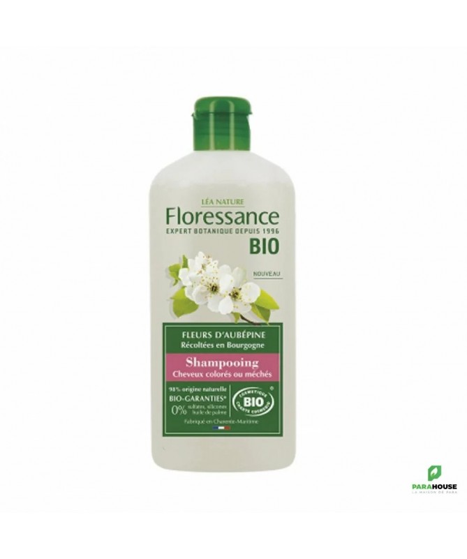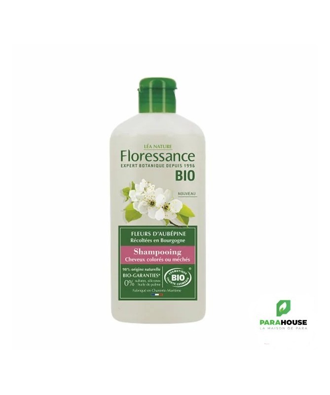 FLORESSANCE SHAMPOOING FLEURS D'AUBÉPINE 250ML FLORESSANCE SHAMPOOING FLEURS D'AUBÉPINE Bio protège les cheveux colorés même après 10 shampooings et les rend éclatants. Reconnue pour ses propriétés, l'Aubépine est récoltée en Bourgogne, où les conditions sont optimales pour favoriser sa culture. Composition : Aqua / Water / Eau : eau purifiée Decyl Glucoside : agent lavant doux Crataegus Oxyacantha Flower Water** : eau florale d'aubépine Bio Sodium Cocoyl Glutamate : agent lavant doux Glycerin : hydratant1 Cocamidopropyl Betaine, Lauryl Glucoside, Sunfloweroyl Methylglucamide : agents lavant doux Xanthan Gum : gélifiant d'origine naturelle Acetum / Vinegar / Vinaigre : vinaigre Sodium Chloride : sel Guar Hydroxypropyltrimonium Chloride : conditionneur facilitant le démêlage, issu d'une gomme naturelle Parfum (Fragrance) : composition parfumante 100 % d'origine naturelle Aloe Barbadensis Leaf Juice Powder** : poudre d'Aloe Vera Bio Oryza Sativa (Rice) Seed Protein : protéine de Riz Oryza Sativa (Rice) Extract : extrait de Riz Phytic Acid, Sodium Levulinate : stabilisants d'origine naturelle Benzyl Alcohol, Sodium Benzoate, Calcium Gluconate : conservateurs d'origine synthétique Gluconolactone : conservateur d'origine naturelle Lactic Acid, Sodium Hydroxide : agents d'origine naturelle garantissant un pH adapté à la peau Linalool, Limonene : allergènes issus des plantes naturellement présents dans le parfum 1-Permet de retenir l'eau dans la fibre capillaire. Ingrédients issus de l'agriculture biologique Conseils d'utilisation : Appliquer le shampooing sur cheveux mouillés, faire mousser. Rincer soigneusement. Ne pas avaler. Tenir hors de portée des enfants. En cas de contact avec les yeux, rincer abondamment