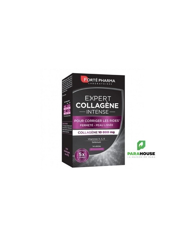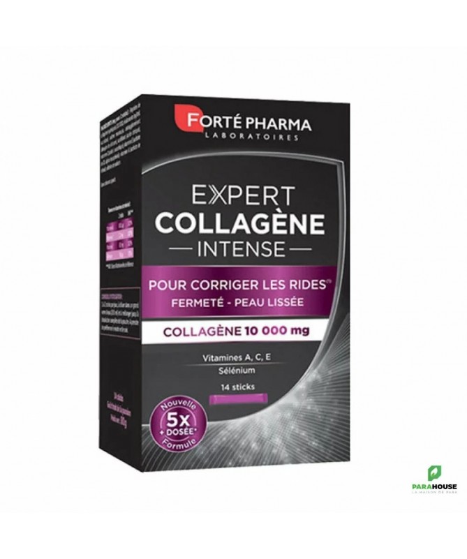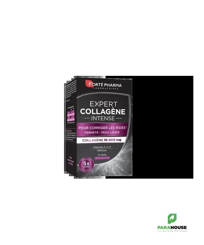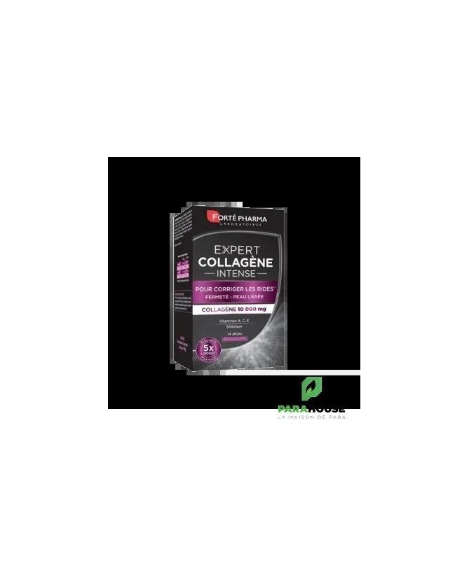 Découvrez FORTE PHARMA EXPERT COLLAGEN INTENSE, un complément alimentaire révolutionnaire en sticks, conçu pour sublimer votre peau et renforcer votre santé beauté. Chaque stick contient une dose optimale de collagène, un élément essentiel pour maintenir l'élasticité et la fermeté de votre peau. Avec l'âge, la production naturelle de collagène diminue, entraînant l'apparition de rides et de signes de vieillissement. Grâce à FORTE PHARMA, retrouvez une peau éclatante et revitalisée.Ce soin innovant est idéal pour les personnes soucieuses de leur apparence et de leur bien-être. En intégrant ces sticks dans votre routine quotidienne, vous nourrissez votre peau de l'intérieur, favorisant ainsi une hydratation optimale et un teint radieux. Profitez d'un produit facile à utiliser, à emporter partout avec vous, pour des résultats visibles et durables. Offrez à votre peau le soin qu'elle mérite avec FORTE PHARMA EXPERT COLLAGEN INTENSE et faites le choix d'une beauté saine et naturelle.Composition :Ingrédients: Collactive (protéines de collagène (2000 mg), protéines délastine (130 mg)Poisson)(2130 mg), agent de charge (maltodextrine de maïs), acidifiants (acide citrique, acide malique), poudre de jus de grenade (Punicagranatum L.) (150 mg), vitamine C (acide L-ascorbique), colorant caramel, arôme maracuja, antiagglomérant (dioxyde de silicium), vitamine E (acétate DL- alpha-tocophérol), levure de sélénium, édulcorants (acésulfame de potassium, sucralose), vitamine A (acétate de rétinol).