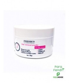 Des tours de magie pour éviter lespoils incarnés. Cettepoudre dépilatoireest idéale pour celles qui recherchent une méthode pratique et efficace d’épilation à domicile, avec des résultats rapides et unepeau hydratéeet protégée. La poudre dépilatoire élimine efficacement les poils indésirables, laissant la peau douce et lisse. Sa formule rapide agit en quelques minutes seulement, ce qui en fait une option pratique pour les personnes pressées. Enrichie en ingrédients hydratants comme l’urée et l’allantoïne, cette poudre dépilatoire hydrate la peau tout en la protégeant des irritations. Vous pouvez épiler toutes les parties de votre corps, aisselles et maillot. Avec la formule hydratante et protectrice, obtenez une peau lisse et soyeuse en quelques minutes seulement, tout en prenant soin de votre peau. FRESHCO est la seule crème dépilatoire avec quantité généreuse de 100 gr.