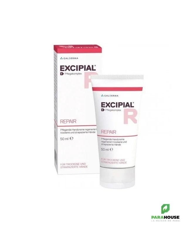 EXCIPIAL REPAIR CREME MAINS 50ML EXCIPIAL REPAIR CREME MAINS est une crème de soin réparatrice et régénératrice, particulièrement éfficace pour les mains fragilisées par des agents nocifs ou par le froid Plus qu'une crème hydratante pour les mains, Excipial Repair répare efficacement la peau altérée des mains abimées abimées, irritées ou sèches. Indications : Crème de soin régénératrice nourrissante pour les mains abimées, irritées ou sèches Pour un usage professionnel et familial Propriétés : Association synergique d’actifs soigneusement sélectionnés accélérateurs de la restructuration de la peau des mains abimées. Enrichis en actifs hydratants et restructurant : huile d’onagre, huile de cardamine, squalane, glycérine Texture non grasse, non collante, laisse les mains douces et soyeuses Délicatement parfumée Sans paraben Composition: Aqua, Behenyl Alcohol, Glycerin, Oenothera Biennis Oil, Paraffinum Liquidum, Ethylhexyl Palmitate, Cetearyl Alcohol, Niacinamide, Panthenol, Squalane, Ceteth-10, Steareth-20, Dimethicone, Glycine Soja Oil, Tocopherol, Disodium EDTA, Parfum, Polyaminopropyl Biguanide, Sodium Hydroxide. Conseils d'utilisation: Appliquer EXCIPIAL REPAIR le soir, après un nettoyage soigneux des mains avec Excipial Clean EXCIPIAL REPAIR s'utilise également en journée pour le soin des mains sèches, lorsqu’une crème barière (Excipial Protect) n’est pas nécessaire.