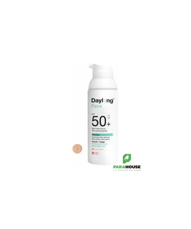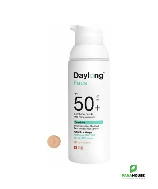 DAYLONG FACE SPF50+ BB FLUIDE TEINTE 50ML DAYLONG FACE SPF50+ BB FLUIDE TEINTE est une protection solaire déstinée aux peaux mixtes à grasse sensibles et réactives qui permet d'armoniser le teint et réduire les imperfections. DAYLONG BB FLUIDE offre une protection solaire quotidienne haute tolérance qui prévient le photovieillissement cutané, avec une action hydratante longue durée et un effet matifiant. Ce soin solaire régule le sébum et lisse le grain de peau avec une texture ultra-légère au toucher sec. DAYLONG FACE SENSITIVE SPF50+ FLUIDE REGULATEUR possède les propriétés suivantes : Anti-UVA/UVB : filtres photostables à large spectre Antioxydant : complexe Celligent® (aide à prévenir le vieillissement cutané prématuré : ridules, rides, tâches) et les dommages cellulaires Anti-pollution Soin quotidien perfecteur de teint : Unifie et illumine le teint pour un hâle naturel Anti-brillance : effet matifiant longue durée (technologie sébo-régulatrice DRY-FLO® TS à base de fécule de tapioca, un extrait naturel de la farine de manioc) Anti-imperfections régule le sébum et lisse le grain de peau Hydratation 8H (Sorbitol, Vitamine E) Base de maquillage Teinte : Light-medium Composition : Aqua (Water), Ethylhexyl Methoxycinnamate, DiethylaminoHydroxybenzoy Hexyl Benzoate, C12-15 Alkyl Benzoate, Dibutyl Adipate, Tapioca Starch, Ethylhexyl Triazone, Methylene Bis-Benzotriazoyl Tetramethylbutylphenol (Nano), Bis-Ethylhexyloxyphenol Methoxyphenyl Triazine, Sorbitol, Helianthus Annus Seed Oil, Glycerin, Tocopherol, Dimethicone, Lauryl Glucoside, Polyglyceryl-2 Dipolyhydroxystearate, Cetyl Phosphate, Cetearyl Alcohol, Benzyl Alcohol, Carbomer, Decyl Glucoside, Sodium Levulinate, Triethanolamine, Caprylyl Glycol, Ascorbyl Palmitate, Ethyl Ferulate, Sodium Anisate, Polymethylsilsesquioxane, Polyglyceryl-5 Trioleate, Propylene Glycole, Rosmarinus Officinalis Leaf Extract, Xanthan Gum, Bht, Disodium Uridine Phosphate. Haute tolérance : hypoallergénique, sans parfum, sans paraben, sans octocrylène, sans conservateur. Testé sous contrôle dermatologique Conseils d'utilisation : Il est conseillé d'appliquer une quantité généreuse de DAYLONG BB FLUIDE et bien faire pénétrer. Éviter tout contact avec les yeux. Appliquer plusieurs fois pour maintenir l'efficacité de la protection solaire. Eviter le soleil en milieu de journée. Une exposition excessive au soleil est dangereuse. Même les produits de protection solaire à SPF élevé ne protègent pas complètement des rayonnements UV.