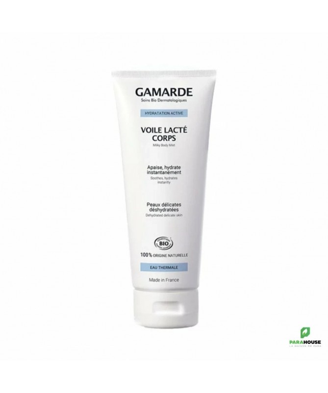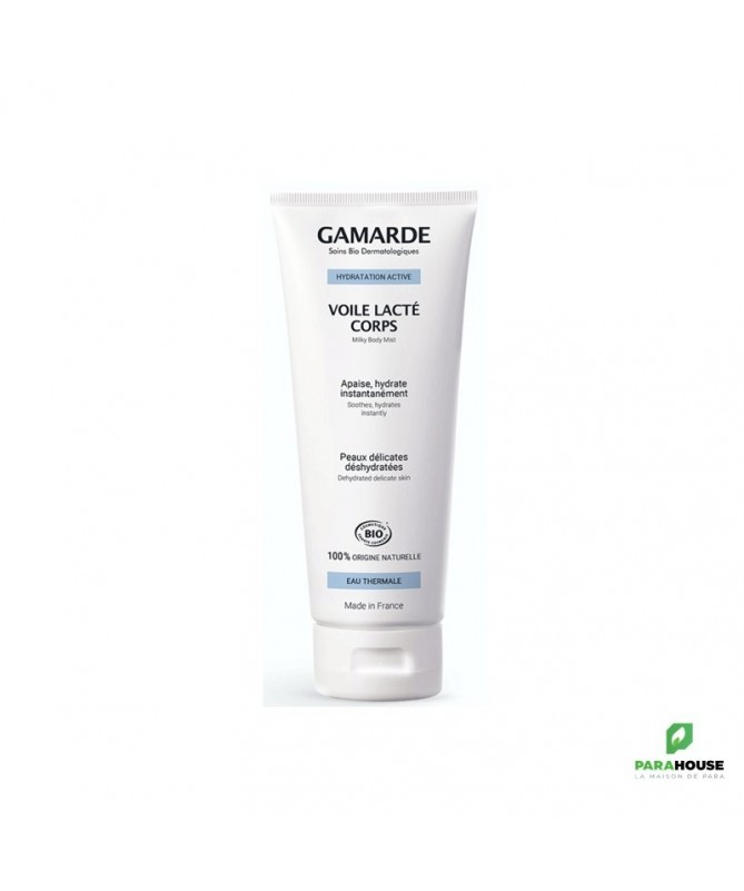 GAMARDE Voile Lacte Corps 200ML GAMARDE Voile Lacte Corps est un lait corps à l'acide hyaluronique d'origine végétale aux propriétés hydratantes. Léger et non gras, le Voile Lacté Corps pour peaux délicates déshydratées apaise, protège et hydrate. Il laisse la peau douce, soyeuse et satinée. Composition : INGREDIENTS : Gamarde aqua (Gamarde Water), Elaeis guineensis (Palm) oil*, Helianthus annuus (Sunflower) seed oil*, parfum (Fragrance), cetearyl alcohol, Glycerin, Cera alba* (Beeswax), glyceryl stearate citrate, coco-glucoside, Corylus avellana (Hazel) seed oil*, Argania spinosa kernel oil*, glyceryl caprylate, Lavandula hybrida oil*, sodium hyaluronate, xanthan gum, citric acid, geraniol°, limonene°, linalool°. *ingrédient d’origine Biologique °ingrédient naturellement présent dans le parfum et les huiles essentielles Conseils d'utilisation : Convient pour : Peau Délicate, Peau Déshydratée Après la toilette, faire pénétrer le Voile Lacté Corps par un doux massage sur l’ensemble du corps.