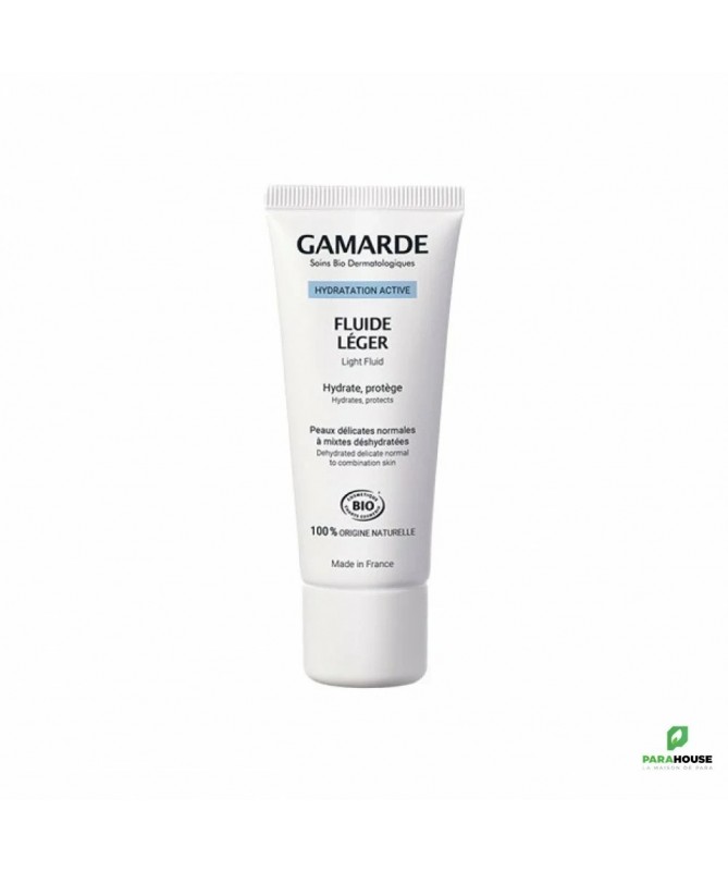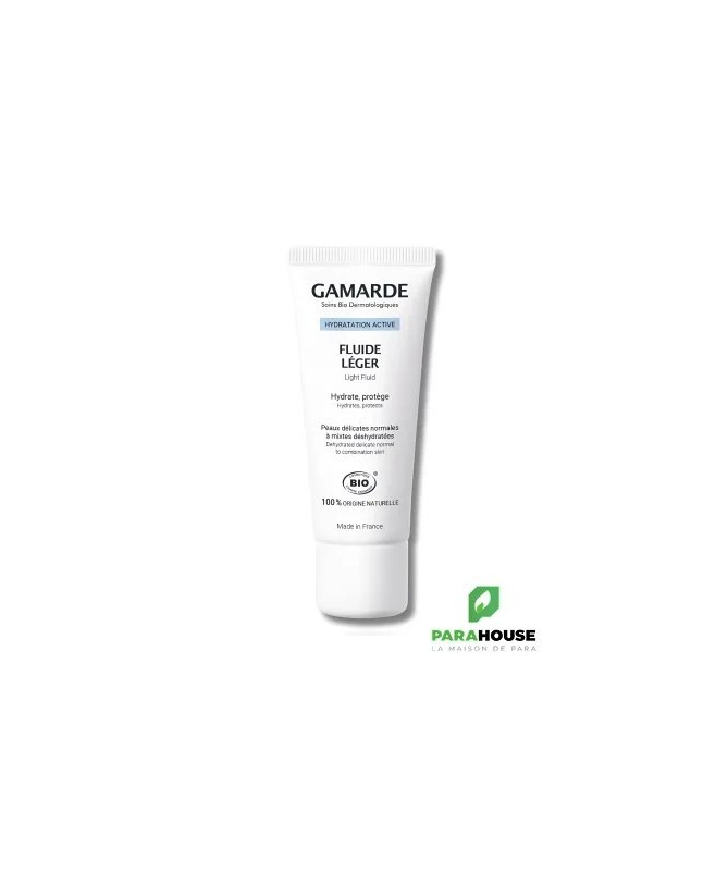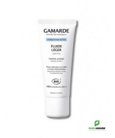 GAMARDE FLUIDE HYDRATANT LEGER 40ML GAMARDE FLUIDE HYDRATANT LEGER hydrate et apaise durablement les peaux normales à mixtes Intensément ressourcé, votre épiderme rayonne de beauté. Hydratant, il contient de l’Acide Hyaluronique d’origine végétale et de l’Huile d’Argan aux propriétés adoucissantes. Composition : Aqua (Water), Gamarde aqua (Gamarde Water), Aloe barbadensis leaf extract*, Helianthus annuus (Sunflower) seed oil*, parfum (Fragrance), Glycerin, silica, polyglyceryl-3-methylglucose distearate, glyceryl stearate citrate, Jojoba esters, xylitylglucoside, anhydroxylitol, Helianthus annuus (Sunflower) seed wax, Argania spinosa (Argan) kernel oil*, isostearyl avocadate, olive oil decyl esters, squalene, glyceryl caprylate, Cymbopogon martini (Palmarosa) oil*, Cinnamomum camphora (Camphor) bark oil, sodium hyaluronate, tocopherol, xylitol, Acacia decurrens flower wax, polyglycerin-3, xanthan gum, citric acid, citral, farnesol, geraniol, limonene, linalool. *ingrédient d’origine Biologique. Conseils d'utilisation : Convient pour : Peau Délicate, Tous Types de Peaux Matin et / ou Soir nettoyer la peau à l’aide des soins d’HYGIÈNE DOUCEUR GAMARDE. Appliquer le Fluide Léger Gamarde.