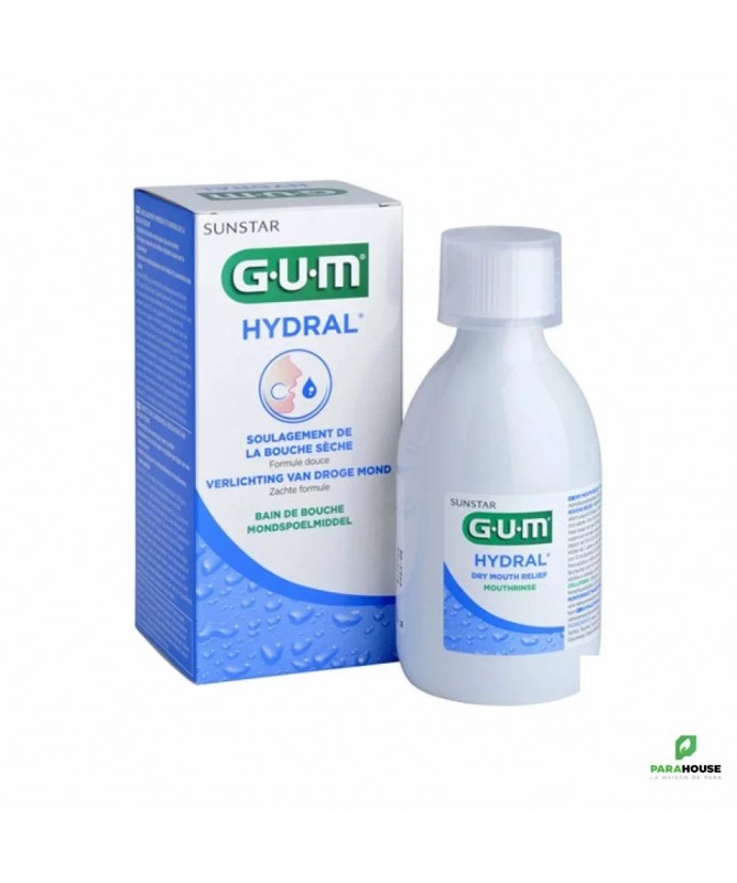 GUM HYDRAL BAIN DE BOUCHE 300ML GUM HYDRAL BAIN DE BOUCHE offre un soulagement immédiat et durable de la sécheresse buccale. Il peut être utilisé jusqu'à 5 fois par jour (15 ml à chaque fois) pour une protection tout au long de la journée. Forme une pellicule hydratante à la surface des tissus buccaux pour une lubrification et un confort améliorés Favorise la reminéralisation de l’émail et la prévention des caries Formule non grasse Arôme menthe douce Sans alcool Pour adultes et enfants de 7 ans et plus