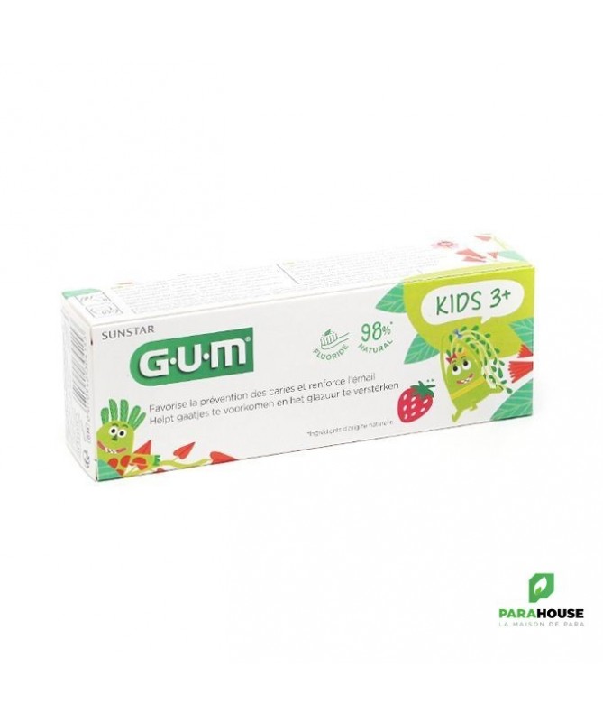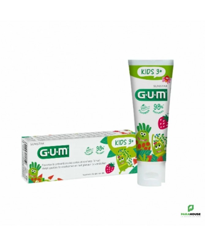 GUM KIDS DENTIFRICE FLUORE + ISOMALT 3-6 ANS 50ML Dentifrice fluoré. Isomalt. Favorise la prévention des caries. Protection contre les attaques acides. 3 à 6 ans. Le dentifrice Gum Kids agit sur la reminéralisation de l'email pour favoriser la prévention des caries et aider à protéger contre les attaques acides. Sa formulation unique fluorée (500ppm de fluor) combinée à l'isomalt agit sur la reminéralisation, pour des dents de lait fortes et en bonne santé. Contient 0;11% p/p de fluorure de sodium. L'arôme fraise et la texture gel ont été conçus pour procurer à vos tout-petits une sensation agréable de brossage et renforcer l'adoption d'un nouveau et agréable rituel de brossage. Composition : Formule INCI : hydrated silica, Aqua, sorbitol, methylparaben, sodium fluoride, sodium dihydrogen phosphate, disodium phosphate, isomalt, cellulose gum, lauryl glucoside, sodium saccharin, aroma, titanium dioxide, CI 73360. Conseils d'utilisation : Il est recommandé de brosser les dents de l'enfant au moins une fois par jour avant l'âge de 3 ans et au moins deux fois par jour jusqu'à l'âge de 6 ans et de l'accompagner dans son brossage. Consulter régulièrement un chirurgien-dentiste.