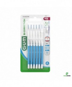 GUM BI DIRECTION Brossette interdentaire 0.9MM 2314 GUM BI DIRECTION Brossette interdentaire peut être ajustée pour nettoyer toutes les zones de la bouche.avec sa tête orientable à 90°: +25% de la plaque dentaire éliminée grâce au profil triangulaire de ses brins collectant plus de plaque. Brins recouverts de chlorhexidine, agent antibactérien de référence, pour préserver la brossette propre entre chaque utilisation Toron recouvert de nylon pour réduire le risque traumatique et améliorer le confort d’utilisation Manche bi-matière allongé pour une meilleure préhension et pour atteindre facilement toutes les zones de la bouche Convient aux patients porteurs d'implants ou d'appareil orthodontique Tête orientable en 2 positions : 180° pour les zones antérieures, 90° (en L) pour facilement atteindre les zones postérieures