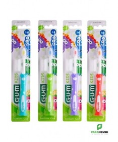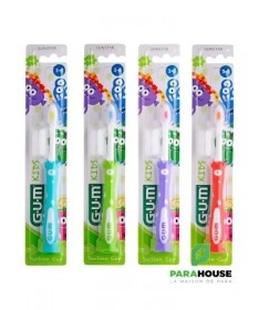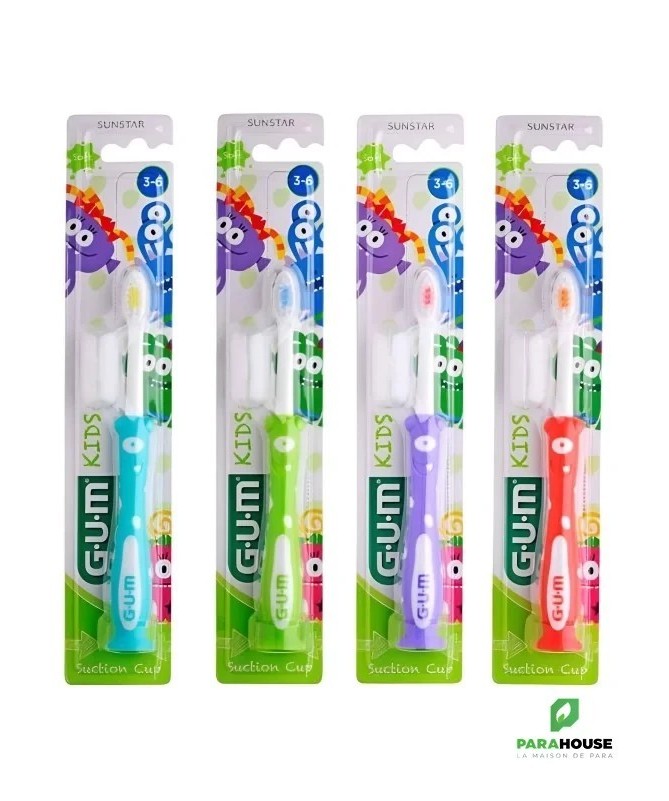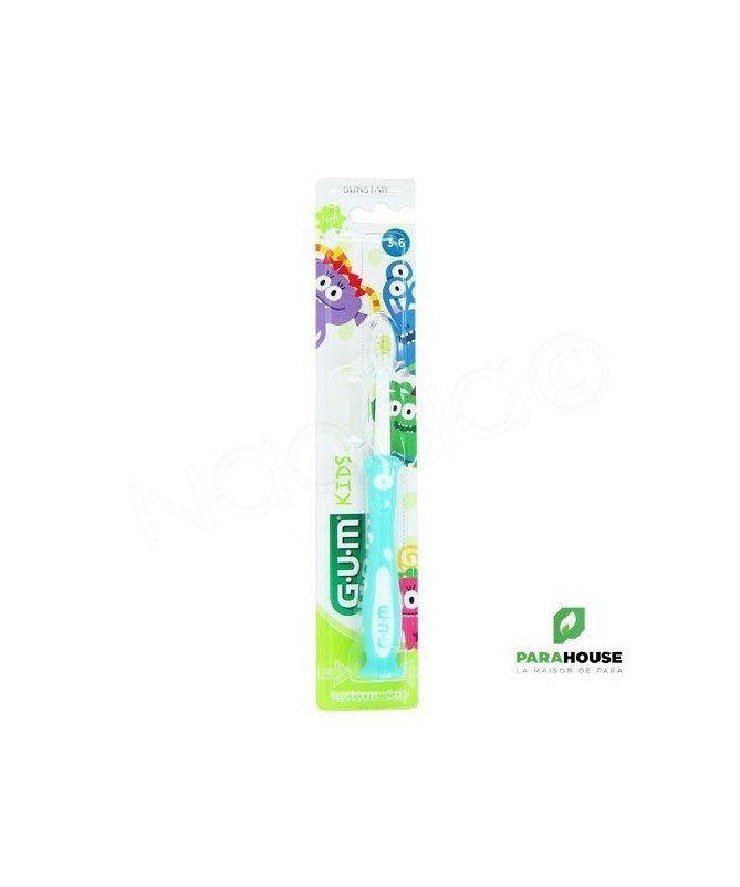 GUM KIDS Brosse à Dents Souple 3-6 ansLa brosse à dents GUM KIDS 3-6ans est conçue spécialement pour les enfants dès 3 ans. Dotée depoils souples, elle nettoie en douceur les dents de lait et les gencives sensibles. Sonmanche ergonomiqueest adapté aux petites mains et facilite le brossage assisté par les parents.Les brins en nylon de haute qualité éliminent efficacement la plaque dentaire sans abîmer l’émail. La version 3-6 ans possède unetête compacte antichocet unindicateur colorépour doser le dentifrice. Sonmanche avec gripet saventouseassurent hygiène et praticité.Bénéfices- Nettoyage doux et efficace des dents et gencives.- Réduction des risques d’irritation ou de saignement.- Design amusant et ergonomique pour motiver les enfants.- Favorise l’apprentissage de bonnes habitudes dentaires.Indications- Enfants de 3 ans et plus.- Prévention des caries et de l’accumulation de plaque.- Pour les parents souhaitant initier leur enfant au brossage.Conseils d’utilisation- Brosser les dents 2 fois par jour, après les repas.- Utiliser une petite quantité de dentifrice fluoré.- Superviser le brossage pour garantir un nettoyage complet.- Compléter avec du fil dentaire si nécessaire.- Rincer la bouche après le brossage.