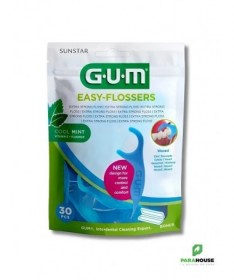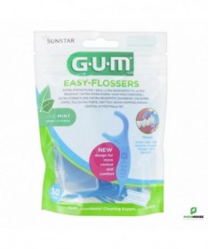 GUM Easy Flossers Porte-Fil 30 UnitésLes porte-fils dentairesGUM Easy Flosserssont conçus pour éliminer efficacement la plaque dentaire et les résidus alimentaires entre les dents.Le fil, ultra résistant, est ciré, enrichi en fluor et en vitamine E, et aromatisé à la menthe pour une agréable sensation de fraîcheur. Facile à manipuler, sa forme ergonomique offre un bon contrôle lors de l'utilisation.Chaque pack contient30 unitéset un étui de transport pratique.Conseils d'utilisation- Tendre le fil en le pinçant entre les pouces et les index.- Insérer délicatement le fil entre les dents, jusqu'à la gencive.- Effectuer un mouvement vertical en maintenant le fil contre la dent, de la gencive vers le haut.