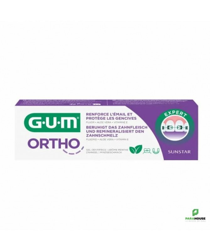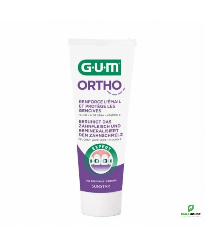 GUM ORTHO GEL DENTIFRICE 75ML GUM ORTHO GEL DENTIFRICE : Spécialement conçu pour les porteurs d'appareils orthodontiques. Renforce l'émail des dents et protège les gencives. Le gel dentifrice GUM ortho est spécifiquement formulé pour renforcer l'émail des dents et protéger les gencives contre les irritations. GUM ORTHO GEL DENTIFRICE : Favorise la prévention des taches blanches et procure une reminéralisation supérieure de l'émail grâce à une combinaison unique de Fluor et d'Isomalt. Réduit la formation de la plaque grâce à l'action antibactérienne du CPC Apaise les gencives grâce à ses actifs d'origine naturelle prévenant les irritations (Bisabolol, Extrait de gingembre, Aloe Vera, Vitamine E). Arôme menthe douce pour une sensation de fraîcheur. Composition : Formule INCI : hydrated silica, Aqua, sorbitol, lauryl glucoside, isomalt, peg-8, cocamidopropyl betaine, panthenol, bisabolol, zingiber officinale root extract, aroma, xanthan gum, sodium methylparaben, tocopheryl acetate, sodium saccharin, sodium fluoride, allantoin, potassium sorbate, cetylpyridinium chloride, aloe barbadensis leaf juice, CI 47005, CI 42090, sodium benzoate, limonene. Conseils d'utilisation : Utiliser Gum Ortho Dentifrice en brossage quotidien avec une brosse à dents Gum Ortho Brosse à Dents Orthodontique, au moins 2 fois par jour pendant 3 minutes. Dentifrice destiné aux adultes et enfants de plus de 7 ans.