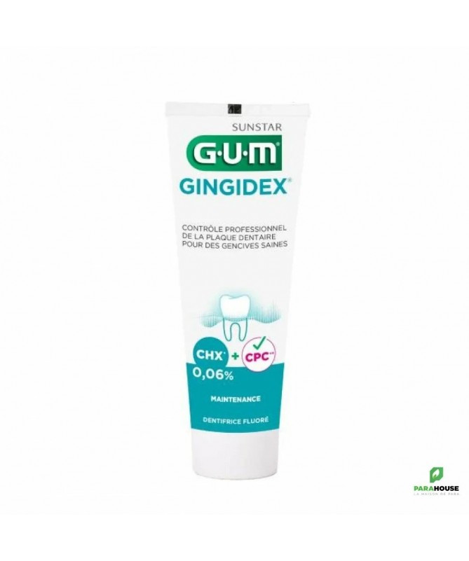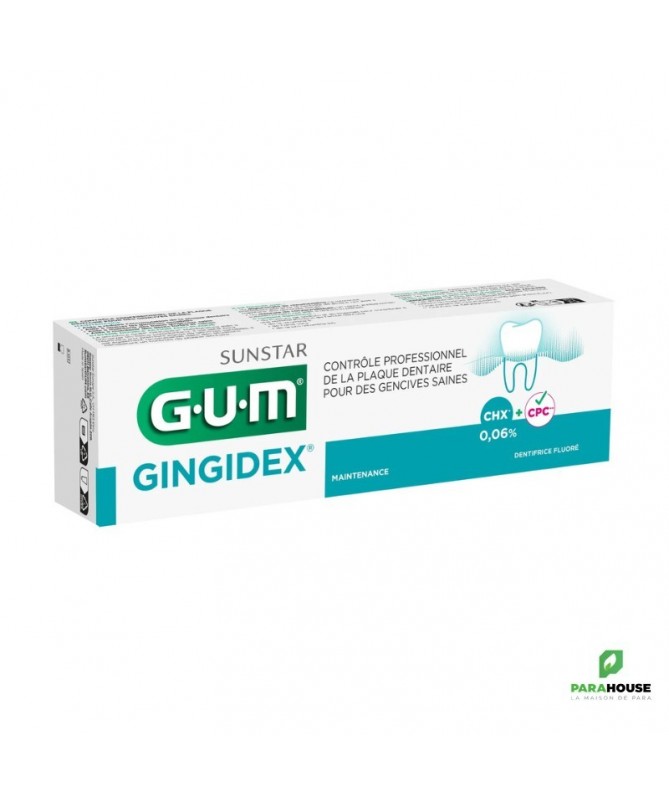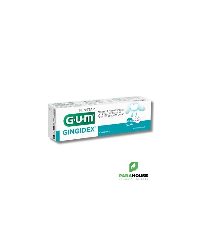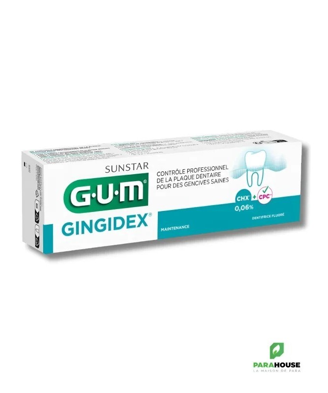 GUM GINGIDEX DENTIFRICE 75ML Si vous avez des gencives douloureuses, ou voulez simplement offrir une protection maximale à votre bouche et réduire le risque de problèmes à l’avenir, le dentifrice GUM GINGIDEX 0,06% procurera à vos gencives les soins dont elles ont besoin. Il suffit tout simplement de l'utiliser avec une brosse à dents souple après chaque repas, ou au moins deux fois par jour, pendant deux minutes minimum. GUM GINGIDEX DENTIFRICE : Aide à réduire l’accumulation de plaque dentaire Aide à apaiser les gencives sensibles Aide à maintenir des tissus gingivaux sains Système double action antiplaque combinant 2 antiseptiques : chlorhexidine à 0,06%, molécule de référence, et chlorure de cétylpyridinium. L'aloe vera contribue à nourrir et apaiser tissus de la bouche Contient de la vitamine E, un antioxydant efficace Pro-vitamine B5, pour aider à revitaliser la muqueuse buccale Contient une combinaison de fluor (1450 ppm) et d'isomalt pour renforcer l'émail et favoriser la prévention des caries Nouvelle formule gel Idéal en phase de maintenance après un traitement parodontal ou pour répondre aux premiers signes de gencives sensibles Également recommandé pour le contrôle de plaque en implantologie ou en situations prothétiques. Composition : Aqua, Sorbitol, Hydrated Silica, Isomalt, Panthenol, Hydroxyethylcellulose, PEG-40 Hydrogenated Castor Oil, Cocamidopropyl Betaine, Aroma, Menthol, Sodium Fluoride, Sodium Saccharin, Sodium Chloride, Anethole, Aloe Barbadensis Leaf Juice, Sodium Methylparaben, Glycerin, Chlorhexidine Digluconate, Eucalyptus Globulus Oil, Cetylpyridinium Chloride, Tocopherol, Sodium Benzoate, Limonene, CI 42090. ___________________ Utilisation chez l'adulte uniquement. Usage externe Ne pas avaler Conseils d'utilisation : Appliquer le dentifrice GUM gingidex avec une brosse a dent souple et se brosser les dents après chaque repas, ou au moins 2 fois par jour pendant 3 minutes