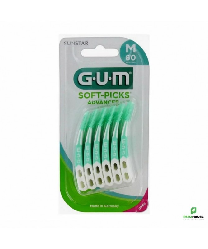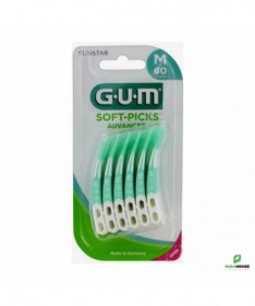 GUM SOFT PICKS ADVANCED 650 GUM SOFT PICKS ADVANCED est le plus pratique de nos accessoires de nettoyage interdentaire. Doux et facile à utiliser, ce bâtonnet jetable doté de brins souples en caoutchouc assure un nettoyage complet entre les dents. Grâce à son design incurvé moderne, il peut facilement atteindre toute la bouche, y compris les zones difficiles d'accès telles les zones postérieures, assurant ainsi un nettoyage en profondeur. GUM SOFT PICKS ADVANCED est idéal pour tous les patients y compris ceux ayant des bridges, des appareils orthodontiques ou des gencives fragiles. Brins en caoutchouc souples qui glissent confortablement entre les dents pour retirer plaque dentaire et résidus alimentaires Disponible en 2 tailles, adaptées aux petits et grands espaces interdentaires Doux et sans danger pour les gencives sensibles Stimule et masse délicatement les tissus gingivaux pour une meilleure santé des gencives Sans latex, sans bois, sans métal