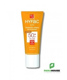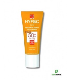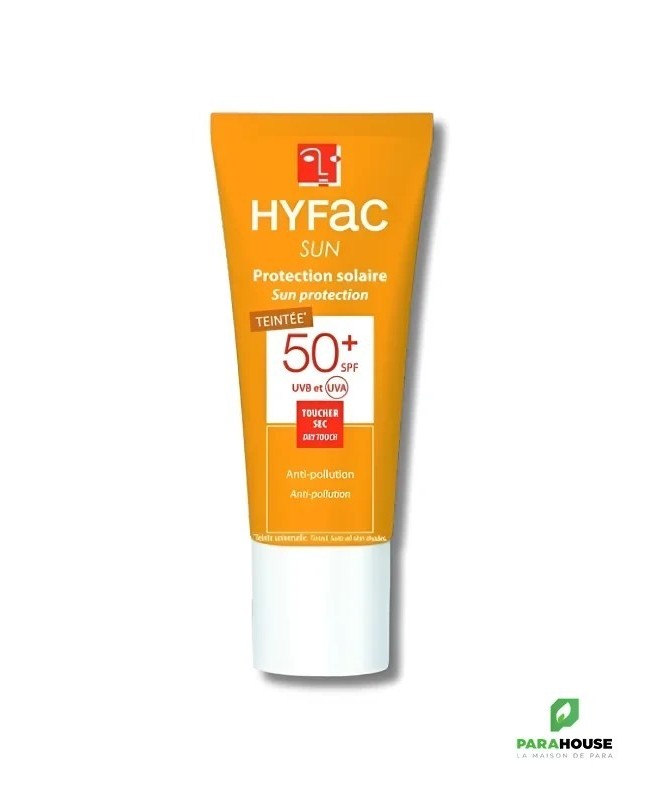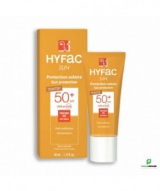 HYFAC SUN PROTECTION SOLAIRE TEINTEE SPF50+ 40ML HYFAC SUN PROTECTION SOLAIRE TEINTEE SPF50 est une protection solaire d’appoint qui aide à protéger efficacement la peau contre les rayons ultraviolets du soleil. Son complexe d’actifs protège des agressions extérieures (vent, stress, pollution). Les extraits de graines de Moringa sont reconnus pour augmenter la capacité des cellules de la peau à se protéger et à éliminer les polluants (action anti-pollution). La crème solaire HYFAC ecran Teinté renforce la protection contre la lumière bleue et réduit l’apparition des taches brunes dues aux rayons UVB. Sa texture légère et non grasse s’étale facilement sur la peau. Toucher sec, sans effet gras, enveloppant et confortable. Composition : :AQUA (WATER), OCTOCRYLENE, METHYLENE BIS-BENZOTRIAZOLYL TETRAMETHYLBUTYLPHENOL [NANO], DIBUTYL ADIPATE, CI 77891 (TITANIUM DIOXIDE) , CETEARETH-20, CYCLOPENTASILOXANE, BUTYL METHOXYDIBENZOYLMETHANE (AVOBENZONE), BIS-ETHYLHEXYLOXYPHENOL METHOXYPHENYL TRIAZINE, CYCLOHEXASILOXANE, GLYCERIN, PTFE, DICAPRYLYL CARBONATE, DECYL GLUCOSIDE, ETHYLHEXYL TRIAZONE, BUTYLENE GLYCOL, TOCOPHEROL, ORBIGNYA OLEIFERA SEED OIL, MALTODEXTRIN, MORINGA OLEIFERA SEED EXTRACT, PARFUM (FRAGRANCE), CITRIC ACID, XANTHAN GUM, SODIUM POLYACRYLATE, PROPYLENE GLYCOL, CHLORPHENESIN, TETRASODIUM GLUTAMATE DIACETATE, SODIUM BENZOATE, o-CYMEN-5-OL, SILICA, CI 77492 (IRON OXIDES), CI 77491 (IRON OXIDES), CI 77499 (IRON OXIDES) Conseils d'utilisation : Il est conseillé d'appliquer une quantité suffisante de Hyfac ecran teinté pour couvrir la zone exposée. Une quantité réduite de produit diminue la protection solaire.