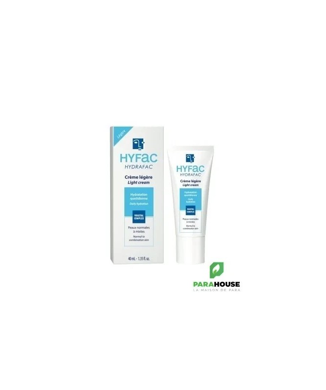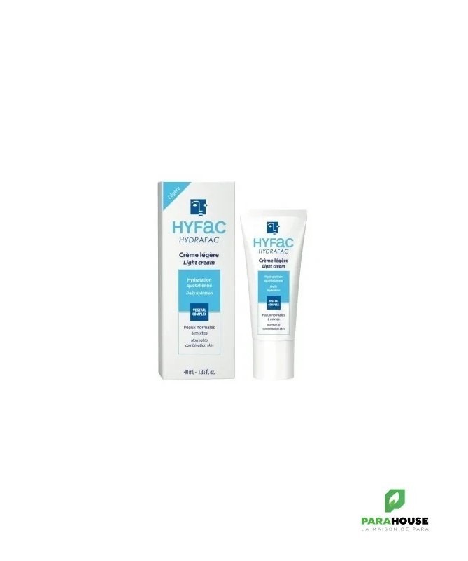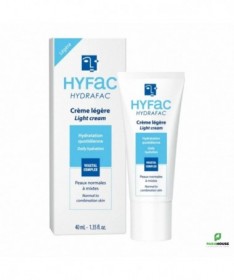 Hyfac Hydrafac CREME LEGERE 40ML Hyfac HYDRAFAC La crème hydratante visage légère procure une sensation d’hydratation immédiate et durable de l’épiderme et booste la fonction d’hydratation de la peau. Enrichie en actifs végétaux, sa formule améliore le renouvellement de l’épiderme pour maintenir la protection de la barrière cutanée. Utilisée au quotidien, Hyfac Hydrafac CREME LEGERE lisse le grain de peau et révèle l’éclat du teint pour un effet « peau neuve ». Sa texture fondante et non grasse apaise immédiatement et apporte une sensation de fraîcheur et de confort à la peau. Recommandée pour les peaux normales à mixtes, ou durant l’été, elle est également idéale comme base de maquillage. Composition: AQUA (WATER) / EAU, ISONONYL ISONONANOATE , PROPANEDIOL , BUTYLENE GLYCOL , SODIUM POLYACRYLATE , PENTYLENE GLYCOL , CHONDRUS CRISPUS EXTRACT , ULEX EUROPAEUS LEAF/ROOT/STEM EXTRACT , SACCHARIDE ISOMERATE , GLYCERIN , PARFUM (FRAGRANCE) , XANTHAN GUM , CAPRYLYL GLYCOL , ETHYLHEXYLGLYCERIN , PHENETHYL ALCOHOL , GLUCOSE , CARRAGEENAN , DISODIUM EDTA , CITRIC ACID , SODIUM BENZOATE , CI 42090 (BLUE 1) Conseils d'utilisation: Appliquer Hyfac Hydrafac CREME LEGERE matin et/ou soir sur la peau du visage et du cou parfaitement nettoyée avec le gel nettoyant purifiant HYFAC Original. Idéal comme base de maquillage. La crème hydratante visage pour les peaux normales à mixtes HYDRAFAC Légère hydrate et apaise la peau. Sa texture fine et non grasse désaltère la peau dès l’application et lui procure souplesse, douceur et éclat. La peau retrouve toute sa fraîcheur. Sans fini gras.