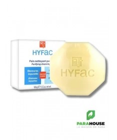 HYFAC PAIN NETTOYANT PURIFIANT 100GR HYFAC PAIN NETTOYANT PURIFIANT est un pain dermatologique sans savon qui facilite l'élimination de l'excès de sébum et des impuretés. Il nettoie et purifie en douceur les peaux jeunes à imperfections sans les agresser. Recommandé pour le visage et le corps, sa formule sans savon apaise les sensations de tiraillements et respecte la barrière cutanée. Après le nettoyage, la peau est plus nette, plus saine et purifiée en profondeur. Composition : INCI : ZEA MAYS (CORN) STARCH, POTASSIUM LAURYL SULFATE, CETEARYL ALCOHOL, SODIUM LAURYL SULFATE, HYDROGENATED CASTOR OIL, AQUA ( WATER), TALC, GLYCINE, GLYCERIN, PARFUM (FRAGRANCE), PIROCTONE OLAMINE, PARAFFINUM LIQUIDUM (MINERAL OIL), COCAMIDOPROPYL BETAINE, LACTIC ACID, CI 77891 (TITANIUM DIOXIDE), POTASSIUM PHOSPHATE, CI 77492 (IRON OXIDES). Conseils d'utilisation : Utiliser HYFAC PAIN NETTOYANT PURIFIANT matin et soir sur une peau préalablement humidifiée. Faire mousser entre les mains et appliquer en massant légèrement la peau. Rincer abondamment à l’eau claire. Il est ensuite conseillé d’appliquer le soin global HYFAC sur une peau parfaitement sèche. Facile à transporter, le savon HYFAC est idéal à glisser dans sa valise pour les voyages. Sa formule ultra-douce est adaptée à tous les types de peaux, même les plus sensibles.