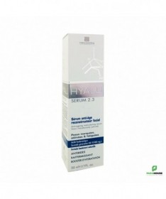 INNODERM Hyalu Serum 2.3 Sérum Reconstructeur Anti-âge Hyalu Le sérum reconstruteur anti-âge permet l'Hydratation, éclat, fermeté, rédcution des rides en profondeur et en surface. Ce sérum peut etre utilisé par les p eaux marquées, abîmées, fatiguées Hyalu Le sérum anti age actif enrichi en acide hyaluronique HD de seconde génération, au concept hautement épuré et naturel. La nouvelle exclusivité anti age HYALU SERUM 2.3 combine innovation et innocuité dermatologiques. HYALU SERUM 2.3 : 1% d'acide hyaluronique HD* nouvelle génération soit le soin le plus concentré en acide hyaluronique de haute densité . La formule pure la plus minimaliste du marché en vue d'offrir la plus haute tolérance possible. HYALU SERUM 2.3 convient parfaitement aux peaux réactives, atopie sévère, eczémas de contact, psoriasis, acnés, etc... Effet FILLER et anti-oxydant immédiats. Super hydratant, raffermissant, pourvoyeur d'éclat cutané. Une innovation brevetée avec: de l'acide Hyaluronique 2de génération HD pour repulper et hydrater en profondeur du Lactate de sodium (acide de fruit à pH neutralisé) pour accélèrer le renouvellement de la peau, et illuminer le teint du Glycérol une molécule clé pour la restructuration du derme et de l'épiderme. Composition : Aqua, glycerin, sodium lactate, sodium hyaluronate, EDTA, chlorphenesin. Hyalu Le sérum anti-âge NE contient ni parfum, ni colorant, ni agent de texture, ni tout autre ingrédient inutile à son efficacité. Conseils d'utilisation: Il est indiqué d'Appliquer Hyalu Le sérum anti-âge matin et soir sur une peau propre. Etaler par effleurage.