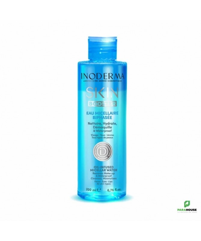 INODERMA SKIN BOOSTER Eau Micellaire Biphasee 200ML INODERMA SKIN BOOSTER Eau Micellaire Biphasee nettoie, hydrate et démaquille instantanément tous maquillage, même waterproof. Respecte l'équilibre des peaux sensibles. SKIN BOOSTER Eau Micellaire Biphasee est adaptée à tous types de peaux (visage, yeux, lèvres). Composition : Extrait de fruit d’Evodia Rutaecarpa : a un effet skin booster, effet bonne mine et anti-âge . NB : Hypoallergénique- sans parabène- sans alcool Conseils d'utilisation : Agiter INODERMA Eau Micellaire délicatement avant emploi. Matin et/ou soir, A l'aide d'un coton disque, nettoyer et/ou démaquiller délicatement le visage. Sans rinçage.