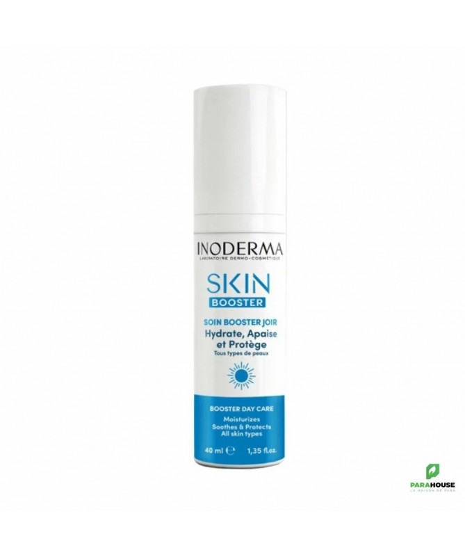 INODERMA SKIN BOOSTER SOIN BOOSTER JOUR 40ML INODERMA SKIN BOOSTER SOIN BOOSTER JOUR hydrate et embellit la peau toute la journée. Elle protège des agressions quotidiennes pour une peau énergisée et éclatante. INODERMA SOIN BOOSTER JOUR est adaptée à tous types de peaux. Composition : · Extrait de fruit d’Evodia Rutaecarpa : a un effet skin booster, effet bonne mine et anti-âge. NB : Hypoallergénique- sans parabène- sans alcool Conseils d'utilisation : Pompez une noisette de INODERMA SKIN BOOSTER et chauffez-la entre vos mains. Appliquer délicatement sur une peau propre et sèche : visage et cou.
