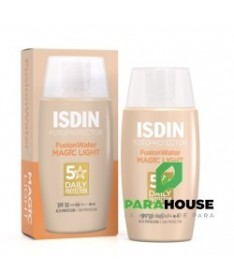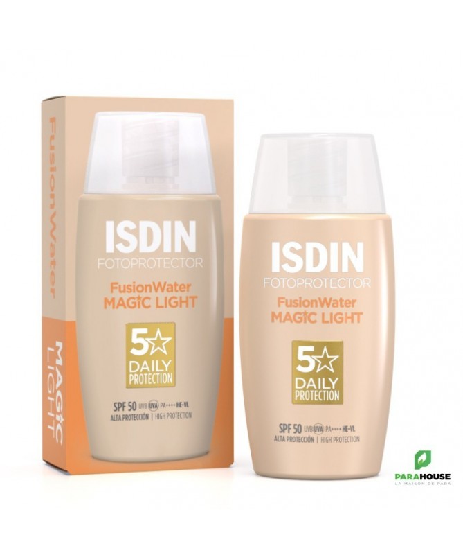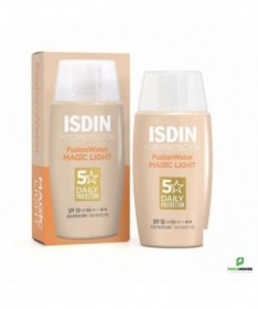 Fotoprotector ISDIN Fusion Water Color Light SPF 50Crème solaire visage teintée ultra-légère, idéale pour protéger les peaux claires des rayons UV au quotidien et unifier le teint.Crème solaire visage teintée à la texture ultra légère.Hydratation intense et absorption immédiate qui garantit une haute protection contre les rayons UV.Couvrance naturelle qui unifie le teint et donne un effet bonne mine aux peaux claires.Existe également en teinte Medium et Bronze.Non comédogène. Mineral Oil free. Hypoallergénique, formulé pour minimiser le risque d'allergie.Bénéfices:Crème solaire visage teintée à la couvrance naturelle qui masque les imperfections et unifie le teint des peaux claires.Haute protection UV SPF 50, testée en laboratoire et dans des conditions réelles de fort rayonnement solaire.Texture ultra-légère. Absorption immédiate et sans résidus gras.Posologie:Appliquer généreusement sur peau sèche ou humide, au moins une demi-heure avant l'exposition au soleil. Renouveler l'application toutes les 2 heures, sur peau sèche ou mouillée, et après avoir transpiré, nagé ou vous être essuyé.Une quantité insuffisante de produit réduit l’action protectrice.Ne pas exposer les bébés et les jeunes enfants au soleil.Tenir le produit hors de portée des enfants.Ne pas réfrigérer ou congeler.Composition:Aqua (Water), Dimethicone, Dibutyl Adipate, Ethylhexyl Salicylate, Ethylhexyl Triazone, Bis-Ethylhexyloxyphenol Methoxyphenyl Triazine, CI 77891 (Titanium Dioxide), Butyl Methoxydibenzoylmethane, Phenylbenzimidazole Sulfonic Acid, Propanediol, Arginine, Pentylene Glycol, Glyceryl Oleate, Glycerin, Calcium Sodium Borosilicate, Hydroxyacetophenone, Dimethicone/Vinyl Dimethicone Crosspolymer, CI 77492 (Iron Oxides), Parfum (Fragrance), Caprylyl Glycol, Hydrated Silica, Tocopheryl Acetate, Polysorbate 60, PEG-10 Dimethicone, Aluminum Hydroxide, Tetrasodium Glutamate Diacetate, Sclerotium Gum, Sodium Hyaluronate, CI 77491 (Iron Oxides), Porphyridium Cruentum Extract, Xanthan Gum, CI 77499 (Iron Oxides), Sodium Lauroyl Glutamate, Lysine, Magnesium Chloride, Sodium Hydroxide.