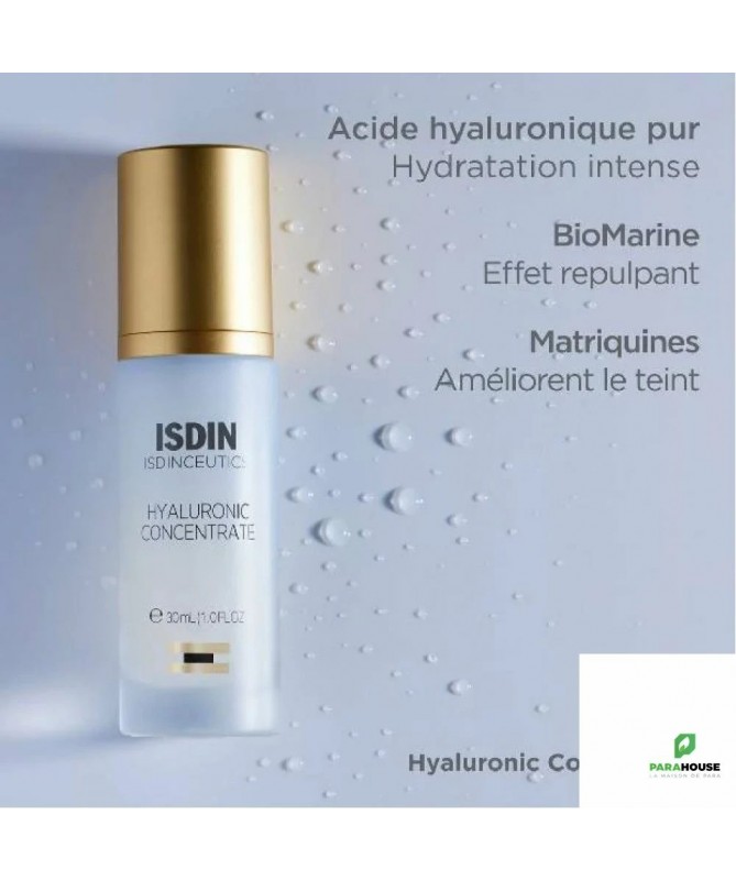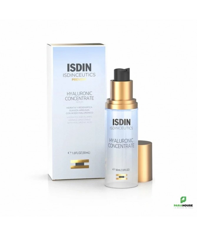 ISDIN ISDINCEUTICS Hyaluronic Concentrate Serum 30ML ISDIN ISDINCEUTICS Hyaluronic Concentrate Serum est un sérum pour le visage à base d’acide hyaluronique pur à faible et moyen poids moléculaire et à la texture aqua-gel qui assure une hydratation profonde des couches superficielles. Hyaluronic Concentrate Serum contribue à repulper la peau, à prévenir les premières rides et lignes d’expression, et à réduire la taille des pores pour une peau lumineuse et radieuse. ISDIN Hyaluronic Concentrate : Fournit une hydratation intense et aide à maintenir la fonction barrière de la peau. Apporte un effet repulpant, aide à redensifier la peau de l’intérieur en comblant les rides. Favorise une peau plus lisse et plus ferme en améliorant le teint et l’élasticité de la peau. Réduit la taille des pores, pour un teint plus uniforme et radieux Composition : Aqua (Eau), diméthicone, Propanediol, glycérine, 1,2-Hexanediol, Sodium Acrylates Copolymer, polymère croisé de diméthicone, butylène glycol, Pseudoalteromonas Ferment Extract, Glycereth-26, lécithine, maltodextrine, benzoate de sodium, pentylene glycol, Lens Esculenta (lentille) Seed Extract, arfum (fragrance), Disodium EDTA, Hydrolyzed Hyaluronic Acid, hyaluronate de sodium, gomme xanthane, acide citrique, Biosaccharide Gum-1, carbomère, polysorbate 20, lactate de sodium, salicylate de sodium, Salicylic Acid, Palmitoyl Tripeptide-1, Palmitoyl Tetrapeptide-7. Conseils d'utilisation : Appliquez Hyaluronic Concentrate matin et soir directement sur la peau propre et sèche du visage, du cou et du décolleté. Massez le gel avec des mouvements circulaires jusqu'à absorption complète.