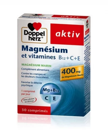 Combine 400 mg de magnésium aux vitamines B12, C et E pour soutenir le métabolisme énergétique, le fonctionnement normal du système nerveux et des muscles