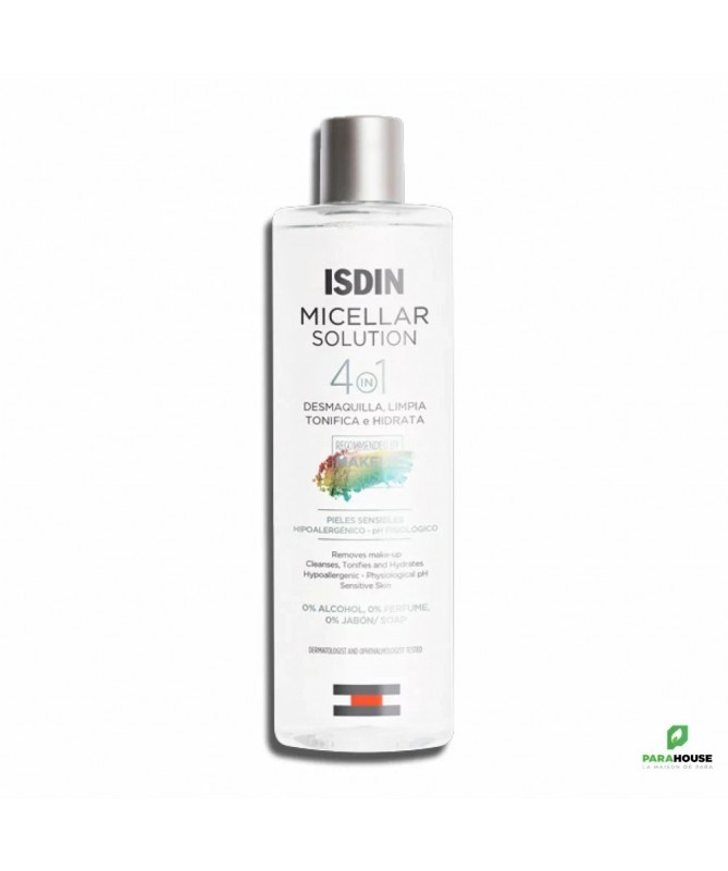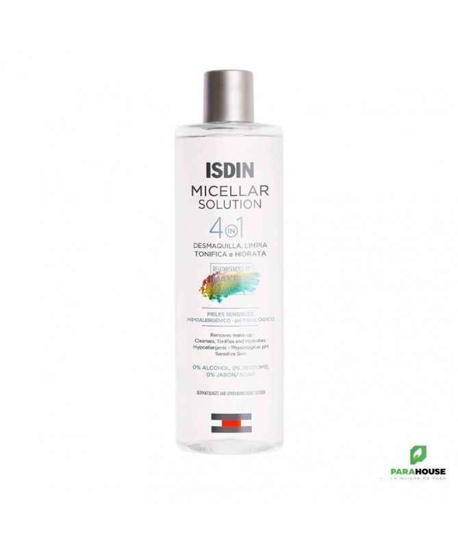 Découvrez l'ISDIN DERMA SOLUTION MICELLAIRE HYDRATANTE 4EN1 400ML, la solution micellaire idéale pour un nettoyage en profondeur tout en hydratant votre peau. Spécialement formulée pour convenir à tous les types de peau, cette eau tonique élimine efficacement les impuretés, le maquillage et les traces de pollution, laissant votre visage frais et revitalisé. Grâce à sa formule innovante, elle offre une sensation de douceur et de confort, sans agresser votre épiderme.Ce produit multifonctionnel agit comme un nettoyant, un démaquillant, un tonique et un hydratant, simplifiant ainsi votre routine beauté. Enrichi d'ingrédients hydratants, l'ISDIN hydratantepréserve l'équilibre naturel de la peau, la rendant plus souple et lumineuse. Que vous soyez en déplacement ou à la maison, ce flacon de 400 ml est l'allié parfait pour un soin quotidien. Offrez à votre peau le meilleur de la technologie dermatologique avec cette solution micellaire qui allie efficacité et douceur.Composition : Aqua, Glycerin, Sodium Hyaluronate, etc.Composition :- Eau purifiée- Isotonique- Copolymère- Sodium- Acide citrique- Conservateurs- Parfum