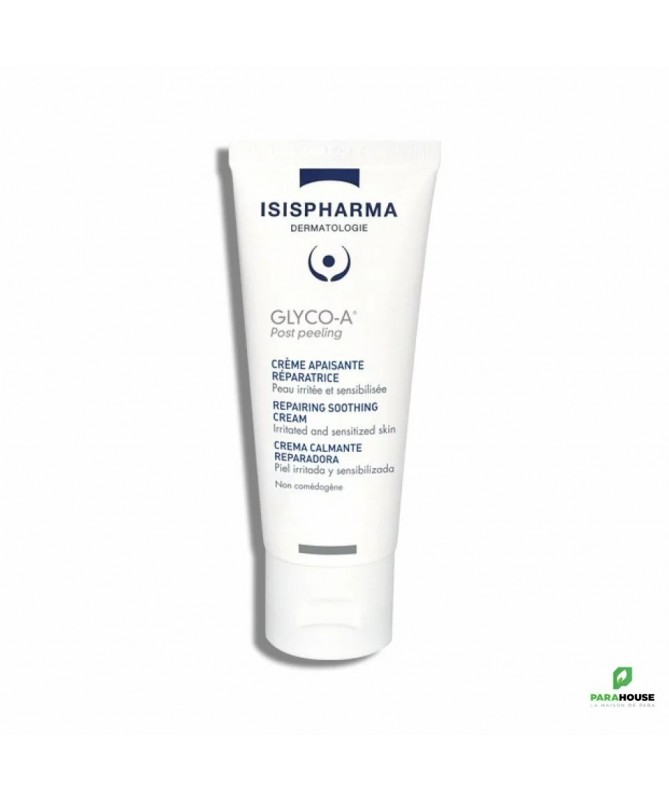 ISISPHARMA GLYCO-A POST PEELING Crème Apaisante 40ML GLYCO A POST PEELING de ISISPHARMA est formulée pour apaiser et restaurer votre barrière cutanée et est conçue spécialement pour : Peau irritée et sensibilisée par l'application de peelings Peau irritée et sensibilisée par l'application de procédures esthétiques GLYCO-A Post Peeling est une crème riche en huile de coton adoucissante qui apaise votre peau après un soin peeling et permet de prolonger ses effets grâce à ses agents réparateurs et restructurants. La crème GLYCO A Post Peeling offre une tolérance optimale grâce à sa formule non parfumée et au pH physiologique conçue pour minimiser les risques de réactions. RÉSULTATS CLINIQUES : Effet apaisant immédiat 100% Apporte du confort à la peau 100% Composition : AQUA (WATER), GLYCERIN, GOSSYPIUM HERBACEUM (COTTON) SEED OIL, METHYLPROPANEDIOL, ISODECYL NEOPENTANOATE, STEARETH-2, STEARETH-21, BUTYROSPERMUM PARKII (SHEA) BUTTER, HYDROXYETHYL ACRYLATE/SODIUM ACRYLOYLDIMETHYL TAURATE COPOLYMER, SODIUM COCOYL AMINO ACIDS, PROPYLENE GLYCOL, GLYCERYL UNDECYLENATE, CARBOMER, P-ANISIC ACID, HYDROLYZED LUPINE PROTEIN, SODIUM HYDROXIDE, SARCOSINE, POLYSORBATE 60, SORBITAN ISOSTEARATE, MAGNESIUM ASPARTATE, POTASSIUM ASPARTATE, SODIUM BENZOATE Conseils d'utilisation : Il est conseillé d'appliquer le matin sur le visage et aussi souvent que nécessaire la journée. Le soir, si votre peau manque de confort, rincer le peeling et appliquer votre soin POST PEELING GLYCO A sur l’ensemble du visage. Testé sous contrôle dermatologique Dans le cadre d’un traitement peeling, l’application d’une protection solaire en supplément la journée est indispensable et jusqu’à une semaine après son interruption.