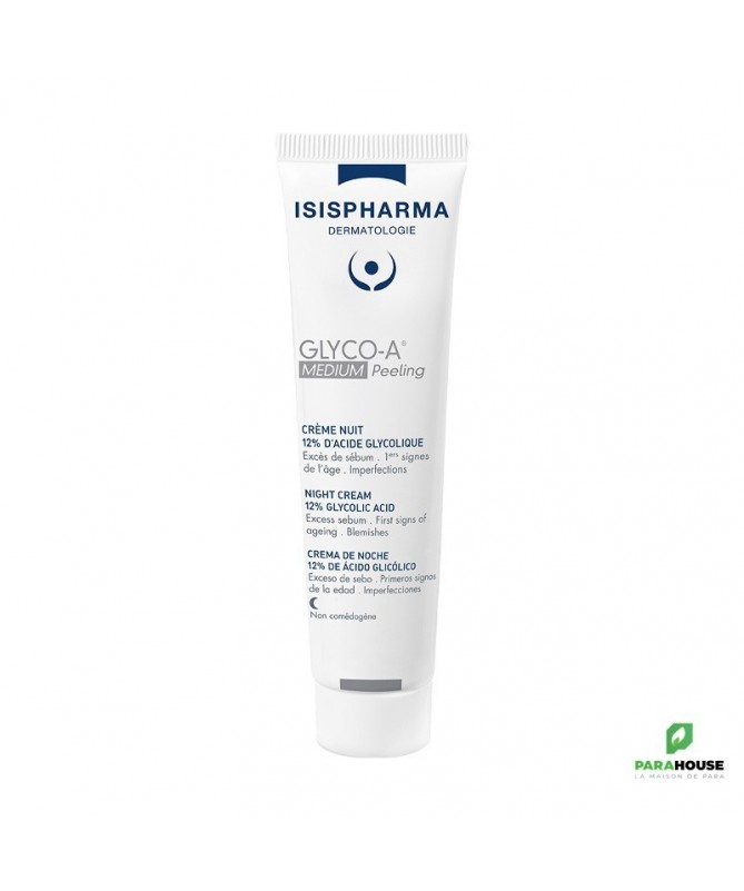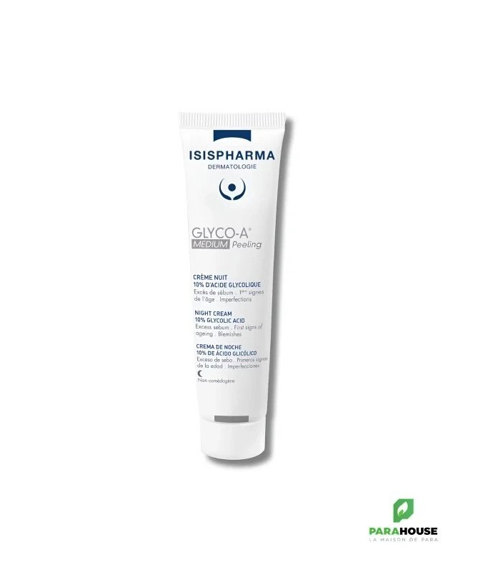 ISISPHARMA GLYCO-A MEDIUM PEELING Crème Nuit 30ML GLYCO A MEDIUM Peeling est une percée dans la technologie du peeling à domicile. Ce traitement de nuit lisse la peau, minimise les imperfections et affine le teint avec une teneur optimale en acide glycolique de 12 %. Formulé à un pH de 3 pour une tolérance et des résultats parfaits, GLYCO A 12% MEDIUM Peeling agit toute la nuit en utilisant des ingrédients pour lisser le grain de peau. Perfectionné à 3 pH avec juste la bonne quantité d'acides (12%) pour garantir que la peau est exfoliée en douceur, sans être irritée, tout en maintenant l'efficacité prouvée des peelings à l'acide glycolique. L'Acide Glycolique 12% est l'acide de fruit le plus efficace du marché, il est aussi connu pour ses propriétés exfoliantes et lissantes pour la peau. Il est essentiel d'éliminer les cellules mortes de la peau et d'intensifier le renouvellement cellulaire. Il stimule également la production de collagène. GLYCO A MEDIUM PEELING de ISIPHARMA est un soin de nuit qui assure un peeling chez vous, conçu spécialement pour réduire : Excès de sébum Premiers signes de l'âge Imperfections. Composition : AQUA (WATER), GLYCOLIC ACID , CETYL ALCOHOL, PARAFFINUM LIQUIDUM (MINERAL OIL) , CETETH-20, STEARETH-20, AMMONIA, PALMITIC ACID, STEARIC ACID Conseils d'utilisation : Il est important d'appliquer une fine couche sur l’ensemble du visage et masser délicatement jusqu’à pénétration complète du produit, le soir uniquement, 2 à 3 fois par semaine et après un nettoyage soigné. la crème de nuit GLYCO-A MEDIUM Peeling ne nécessite pas de rinçage. Si la peau manque de confort, nous vous recommandons de conserver votre peeling sur la peau pour une durée minimum de 30 minutes afin de bénéficier de toute l’efficacité des AHA. L’action des AHA sur la peau peut provoquer quelques petits picotements. Il s’agit d’une réaction normale qui ne dure jamais très longtemps, quelques minutes Si ces picotement persistent au-delà d’une dizaine de minutes, adapter la concentration à votre sensibilité. Éviter le contour des yeux. En cas de contact, rincer abondamment avec de l’eau clair. L’application d’une haute protection solaire est indispensable pendant la durée traitement et jusqu’à une semaine après son interruption. Éviter l’application de peeling superficiel pendant la période estivale. Ne pas appliquer sur les peaux sensibles ou sensibilisées. Eviter de cumuler les exfoliations (chimiques et mécaniques). Ne pas appliquer de peeling dans les 72h suivant une épilation. 24 heures avant la toute première application faites un test d’allergie avec votre peeling au niveau du pli du coude. Ne pas utiliser si vous êtes enceinte. Ne pas appliquer chez les enfants de moins de 12 ans. Certains traitements médicamenteux ne sont pas compatibles avec le peeling. Demander l’avis à votre médecin.