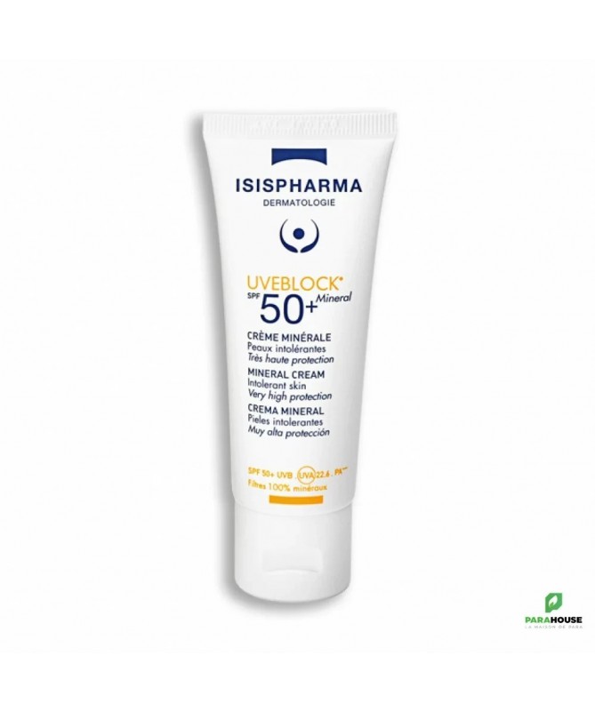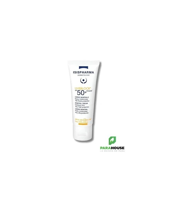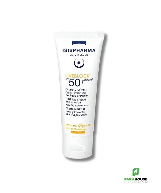 ISISPHARMA UVEBLOCK CREME MINERALE SPF50+ Une peau intolérante aux filtres chimiques va avoir tendance à rougir et à tirailler lors de l'utilisation d'une crème solaire qui en contient. Il existe une solution pour vous assurer une protection solaire efficace et adaptée à votre peau : la crème minérale invisible SPF 50+ de la gamme UVEBLOCK composée de filtres 100 % minéraux. La crème solaire minérale invisible de la gamme UVEBLOCK a été conçue par nos expert pour vous assurer une très haute protection solaire (SPF 50+) ainsi qu'une tolérance optimale ! Les différents filtres solaires UVA/UVB utilisé dans le produit sont 100% d'origine minérale. Grâce à cette sélection de filtres, les personnes ayant la peau très sensibles, voire intolérante, aux filtres chimiques pourront bénéficier d'une protection contre les UVA et UVB à large spectre et se prémunir face à leurs effets néfasfes sur la peau. Sa composition minimaliste et testée sous contrôle dermatologique permet à ISISPHARMA UVEBLOCK CREME MINERALE d'être appliquée dès le plus jeune âge. Sa texture onctueuse et veloutée facilite son application. Point positif : elle ne laisse pas de traces blanches disgracieuses sur la peau, comme peuvent le faire certaines protections solaires plus épaisses ! Conseil d’utilisation : Il est indiqué d'appliquez ISISPHARMA UVEBLOCK CREME MINERALE SPF 50 sur le visage et le cou 15 minutes avant toute exposition au soleil, en évitant soigneusement le contact avec les yeux. Les bénéfices de la crème minérale UVEBLOCK SPF 50+ Des filtres 100% minéraux avec une protection optimale UVA et UVB ; Des ingrédients rigourseument sélectionnés pour les peaux sensibles aux filtres chimiques ; Une texture onctueuse qui convient à tous : adultes, femmes enceintes, enfants, bébés ; Une formulation conçue pour minimiser les risques de réactions, non parfumée et non comédogène, résistante à l’eau et photostable qui garantit une protection durable ! Conseils d'utilisation : Il est indiqué d'appliquer ISISPHARMA UVEBLOCK CREME MINERALE SPF50 en quantité suffisante sur le visage et le corps avant l’exposition. Renouveler fréquemment et après chaque bain, activité sportive ou frottement. Éviter le contact avec les yeux. Composition : Formule INCI : Isohexadecane, Aqua (Water), Titanium Dioxide [Nano], Ethylhexyl Stearate, Peg-30 Dipolyhydroxystearate, Glycerin, Nylon-12, Silica, Trihydroxystearin, Alumina, Pentylene Glycol, Polyglyceryl-3, Diisostearate, Zinc Oxide [Nano], Stearic Acid, Chlorphenesin, Sodium Chloride, 0-Cymen-5-OL.