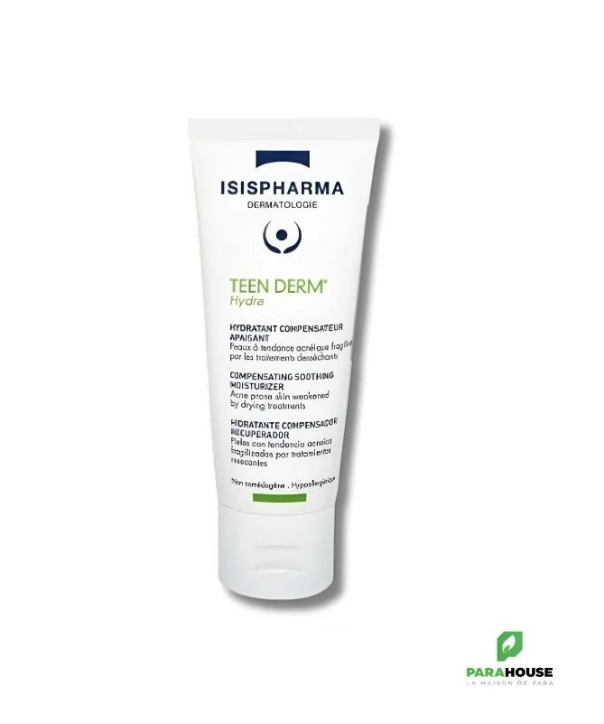 Teen Derm Hydra - Soin Hydratant et Réparateur pour Peaux à Tendance AcnéiqueLe soinTeen Derm Hydraest spécialement formulé pour répondre aux besoins d'hydratation et de réparation des peaux à tendance acnéique fragilisées par les traitements anti-imperfections. Ce soin haute tolérance, testé sous contrôle dermatologique, est non comédogène et apporte confort et souplesse à la peau.Bénéfices :- Hydrate en profondeur et répare les peaux fragilisées- Apporte une haute tolérance, idéal pour les peaux sensibles- Améliore la souplesse et le confort de la peauConseils d'utilisation :Appliquez le soinTeen Derm Hydramatin et soir sur votre visage, après avoir nettoyé la peau avecTeen Derm® Gel Sensitiveet séché consciencieusement.Composition :- Aqua (Water),Glycerin,Propylene Glycol,Butyrospermum Parkii (Shea) Butter,Caprylic/Capric Triglyceride,Dimethicone,Glyceryl Stearate,Pentylene Glycol,Theobroma Cacao (Cocoa) Seed Butter- Xylitylglucoside,Cetearyl Alcohol,Anhydroxylitol,PEG-100 Stearate,Bisabolol,Butyl Avocadate,Xylitol,Butylene Glycol,Chlorphenesin- Carbomer,O-Cymen-5-Ol,Sodium Hydroxide,1,2-Hexanediol,Caprylyl Glycol,Polyquaternum-51,Parfum (Fragrance),Propyl Gallate,Citric AcidIndications :Teen Derm Hydra est recommandé pour les peaux adultes et adolescentes présentant une peau grasse ou ayant une tendance acnéique. Il aide à régénérer et apaiser l’épiderme, en particulier après un traitement anti-imperfections.